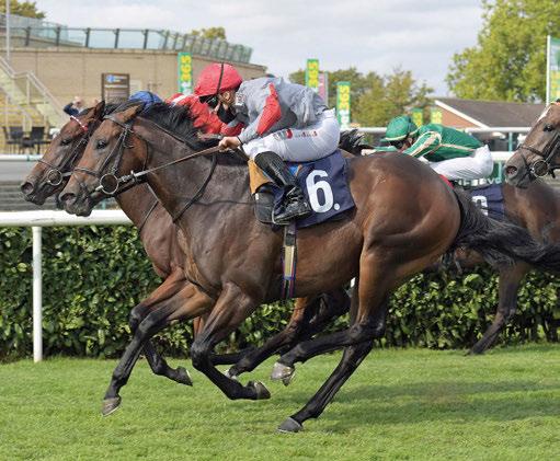 NofewerthansevenoftheeightGr.1winners siredby No Nay Never arejuvenileGr.1winners andthatisexactlywhatwegotfrom Whistlejacket, theTimeform112-ratedwinneroftheGr.1PrixMorny andGr.2JulyStakes,whowassecondintheGr.1 MiddleParkto Shadow Of Light. Whistlejacket waspurchasedbyMVMagnierandWhiteBirch Farmfor500,000gnsoutofBook1oftheTattersalls OctoberYearlingSalein2023,morethanlikely becausehisdam, Adventure Seeker, adaughterof Bering,isalsodamof Whistlejacket’solder Gr.1-winningfull-brother Little Big Bear,who standsontheCoolmoreroster. Whistlejacket will standatHarasdeGrandchampatafeeof€14,000. Therecentlydeceasedandmuchmissed