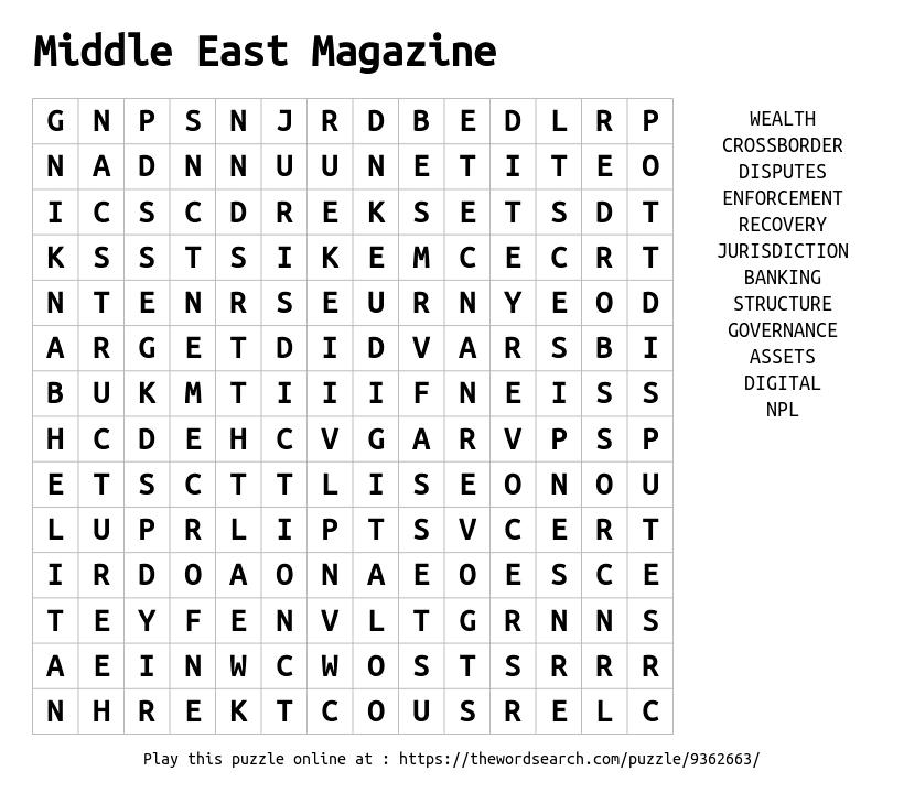 Additionally, this issue includes our Middle East Wordsearch; complete it to redeem a 15% discount on one of our Middle East events.