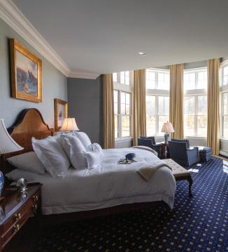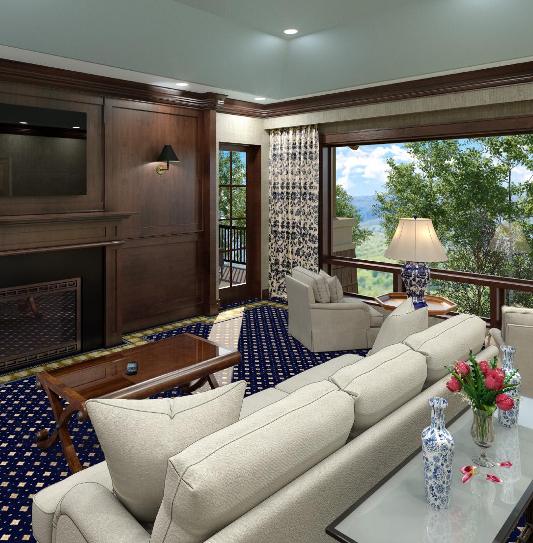 The Lodge & Spa at Three Forks Ranch features two 1,100 squarefoot Master Suites: the Three Forks Suite and the Gold Blossom Suite. Each one has a luxurious king bed. Appointed with royal blue Axminster carpet and