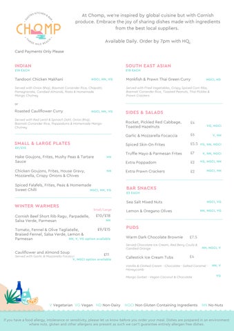 Chomp Drinks Menu