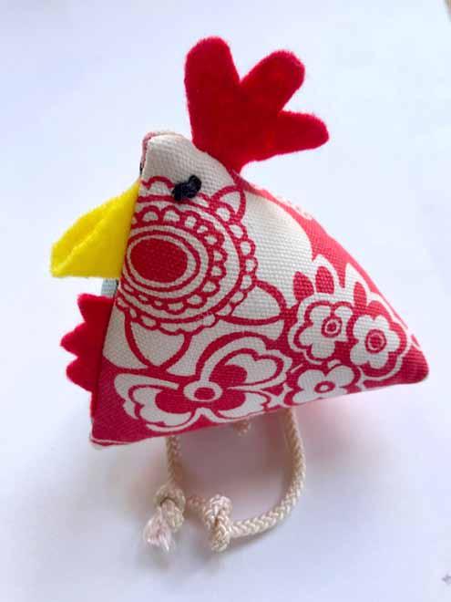 The Orange O f OrTs I am def I n IT ely an OrT –T he wO rds O f T he wO men you will need Stuffing Needle and pins 2 x cords for legs 1 x ribbon for hanging [optional] Thread for sewing or sewing machine 3 x fabric shapes –triangle, comb and zig zag 2 x square od scrap fabric s Ew a triangl E c H ick E n you Can