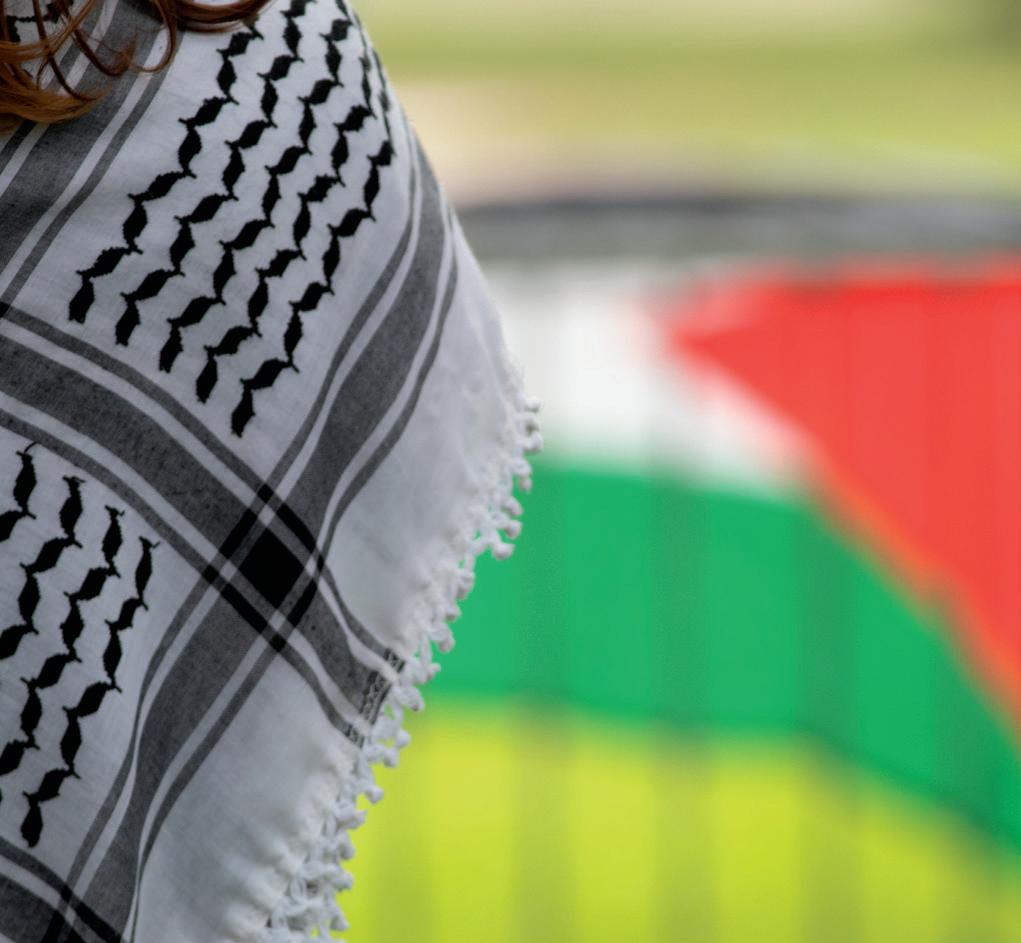 RIYA MISRA / THRESHER A protestor wears a keffiyeh at the Sept. 12 walkout.