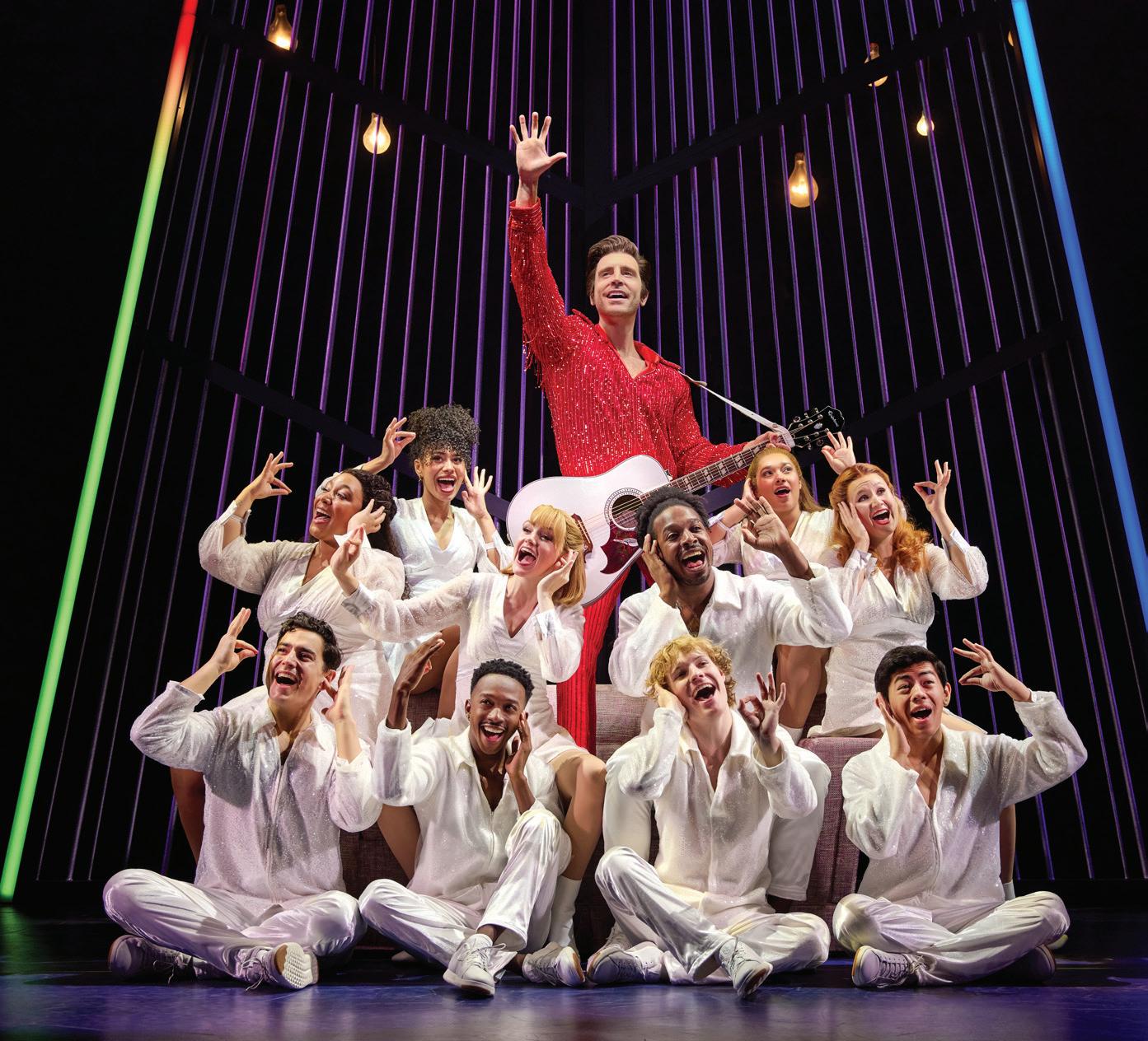 The cast of ‘A Beautiful Noise’ gathers onstage at the Hobby Center. The show retraces the singer Neil Diamond’s life.