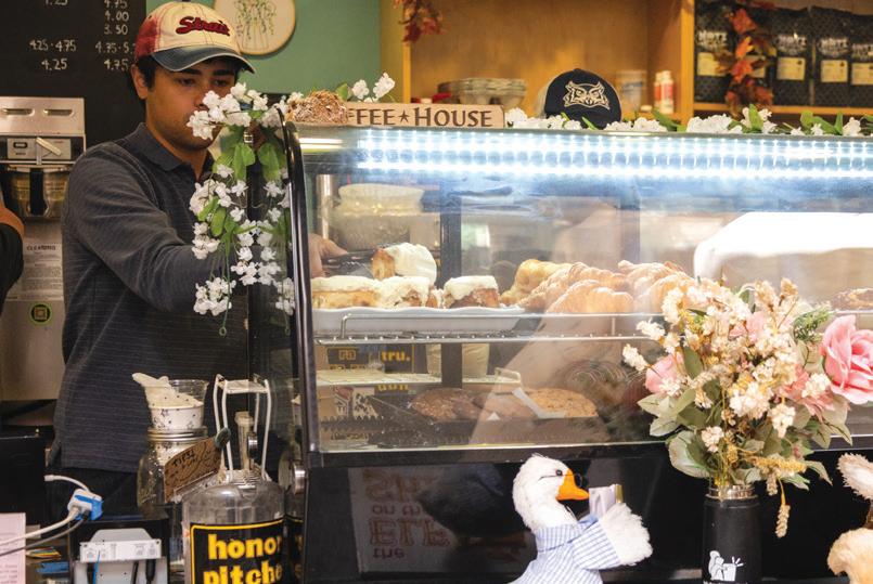A Rice Co eehouse worker reaches into the pastry cabinet while on shift. The popular student-run co eeshop was recently the subject of a lawsuit against the Rice, accused of using a copyrighted image of blueberry mu ns on their social media and website.