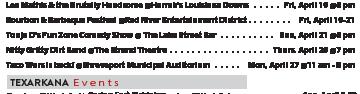 com H FOR SALE. RUNNING BOARDS to step up on for years 2015, 2016, 2017, 2018, 2019, 2020, 2021 & 2022 F-150 model trucks. (318) 4220005 2013 FORD F-150 XLT 4WD #DKE69041 $11,074. Rountree Ford, Shreveport Auto Mall, (318) 798-3673. https:// www.rountreeford. com 2022 RAM 1500 Laramie #NN253863 $39,917. Rountree Ford, Shreveport Auto Mall, (318) 798-3673. https:// www.rountreeford. com 2020 FORD F-150 King Ranch 4WD #LFB75693 $48,710. Rountree Ford, Shreveport Auto Mall, (318) 798-3673. https:// www.rountreeford. com 2019 FORD F-150 Lariat 4WD #KKC44157 $44,814. Rountree Ford, Shreveport Auto Mall, (318) 798-3673. https:// www.rountreeford. com 2021 FORD F-250 Platinum 4WD #MED23325 $68,972. Rountree Ford, Shreveport Auto Mall, (318) 798-3673. https:// www.rountreeford. com For more information call 318-212-2520 or visit our website at wkhs.com/shots Vaccines provided by Vaccines for Children. Remember to bring your child’s immunization record. Children through 18 years of age who meet at least one of the following criteria are eligible to receive VFC vaccines through Shots for Tots: Medicaid eligible, uninsured, underinsured, American Indian or Alaska Native. Willis Knighton Innovation Center 2105 Airline Drive, Bossier City, LA 71111 10 a.m. to 1 p.m. APRIL Shots for Tots Mon, April 8 Tue, April 9 Wed, April 10 Mon, April 22 Tue, April 23 Wed, April 24 Mon, April 15 Tue, April 16 Wed, April 17 • Screened-in Rooms • Wooden Decks • Composite Decks • Covered Decks • Roofing • Ramps Call For Free estimates 318-208-5916 serving n. W. louisiana & e. texas liCensed & insured Brownhomeimprovements.com BROWN Home improvements Call Ark-La-Tex Shop Builders For Your Free Quote Today! 318-469-4843 903-469-4843 SHOPS • BARNS • METAL ROOFING www.shopsbuilt.com 30’x40’x10’ HD Building: 1 10’x10’ roll up door, or 1 10’x8’ sectional garage door. 1 3068 walk-in door, Free gutters, Free insulation, All 2”x6” wall lathing, All #1 grade lumber, All 6”x6” CCA ground contact treated post. 40 year metal warranty! All for $24,000! Special Ends April 30th, 2024 Automotive Section! ✋