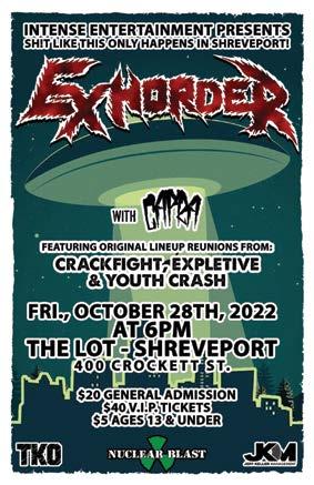 SHREVEPORT Events EXHORDER with Capra. . . . . . . . . . . . . . . . . . . . . . Fri, Oct 28, 6 PM, The Lot Downtown Seva May: On My Own. . . . . . . . . . . . . Fri, Oct 28 – Sun, Oct 30, Shreveport Little Theatre QUEST: LGBTQ+ Music & Arts Festival. . . . Sat, Oct 29, 11:00 AM, The Seventh Tap Brewing Shreveport Brew 2022. . . . . . . . . . . . . . . . . . . . . . . Sat, Oct 29, 2 – 5 PM, Festival Plaza LOVfest. . . . . . . . . . . . . . . . . . . . . . . . . . . . . . . . . Sat, Oct 29, 5 PM, Big D's BarbQue Family Matinee: THE ADDAMS FAMILY. . . . . . . . Sat, Oct 29, 12 PM, Robinson Film Center Fall Fest 2022. . . . . . . . . . . . . . . . . . . . . . . . . . Sun, Oct 30, 5 – 7 PM, Freedom Fields Conjunto Amanecer. . . . . . . . . . . . . . . . . . . . Sun, Oct 30, 6 PM, State Fair of Louisiana It's a Scavenger Hunt!. . . . . . . . . . . . . . . . . Mon, Oct 31, 10 AM – 8 PM, Mall St. Vincent Blues Clues. . . . . . . . . . . . . . . . . Tue, Nov 1, 6 – 9 PM, Shreveport Municipal Auditorium Stephanie Jackson Live. . . . . . . . . . . . . . . Thu, Nov 3, 6 – 9 PM, Frank's Pizza Napoletana Black Restaurant Week. . . . . . . . . . . . Thu, Nov 3, 11 PM – Fri, Nov 4, 1 AM, 808 E 70th St Ballet After Dark - Wine Tasting. . . . . . . . . . . . . . . . Fri, Nov 4, 6 – 9 PM, Retro 521 Co ee