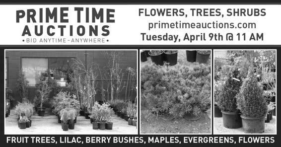 30’ X 40’ X 10’ SHOP $ 31,500 • Idaho Falls • Pocatello WWW.MODERNSTEELBUILDINGS.COM 208-529-3539 Built to a 40lb per sq. ft. Snow Load MODERN STEEL BUILDINGS • 10’ Walls • One 16’x8’ Overhead Door • One Walk In Door AUCTION COMPANY TYPE OF AUCTION ADDRESS PHONE NUMBER DATE TIME WEBSITE PRIME TIME AUCTIONS PLANTS-TREES SHRUBS FLOWERS 2221 South 5th Ave • Pocatello, ID 208-232-4912 APRIL 9 ONLINE 1:00 pm www.primetimeauctions.com BIGHORN AUCTION CO ONLINE ESTATE AUCTION 2895 N. Holmes • Idaho Falls, ID 208-522-7984 APRIL 9 SOFT CLOSE 6:00 pm bighornauctions.hibid.com PRIME TIME AUCTIONS BIG COMMUNITY ESTATE EQUIP 2221 South 5th Ave • Pocatello, ID 208-232-4912 APRIL 13 ONLINE 9:30 am www.primetimeauctions.com PRIME TIME AUCTIONS AUTO, RV, EQUIPMENT 2221 South 5th Ave • Pocatello, ID 208-232-4912 APRIL 13 ONLINE 10:30 am www.primetimeauctions.com BIG MOUNTAIN AUCTIONS ROCKY MNT GRAVEL RETIREMENT & SOUTHERN IDAHO FARM Heyburn, ID 208-431-9300 APRIL 17 SOFT CLOSE 8:00 am MDT www.bigmountainauctions.com BLUE MULE AUCTIONS WESTERN ART, CHAPS, SPURS, FURINTURE, MOUNTS, STERLING AUCTION 195 South Spud Alley • Shelley, ID 208-520-3253 OPENS APRIL 13 “ONLINE” APRIL 18 SOFT CLOSE 10:00 am 6:00 pm www.bluemuleauctions.com GALE HARDING AND ASSOCIATES SPRING CLASSIC FARM SALE 329 W. 7 th S. • Rexburg, ID 208-351-3191 APRIL 20 LIVE! 10:00 am www.potatostateauction.com 2024 AUCTION CALENDAR WANT TO buy 28 gauge shotgun single shot 208-317-3133. OLHAUSEN POOL table, 4x8, $800. Large quantity of scuba gear. 208-360-0347. FIVE AUSTRALIAN Shepherd puppies, blue eyes, two female, three males. Rexburg. $700. Text 208-390-3179. AKC PAPERED male, fox red Lab, amazing bloodlines, 1 year old, $250. 208-339-6938. AKC PAPERED male, fox red Lab, amazing bloodlines, 1 year old, $250. 208-339-6938. 208-233-2011 208-529-9360 TEN CARTONS of 22 shells, long rifles, and hollow points, 400-500 count. $30 each. 208-521-2250. SPRING IS HERE! Arbor Tech provides these services: Tree pruning and removal, stump grinding. Please call 208-881-6989 to schedule bids for service. VICTOR CUTTING torch, gauges and tanks. Pocatello 208-241-5352. 123 ROUNDS of 22 Hornet ammo, $100 Cash. Calls only, no text. 208-840-9002. CANVAS WEDGE tent 12X15X8 with poles, ropes, stakes, $450. Sloping wall dining fly, 12'x12' has integral sloping side walls for footprint of 12x21' with poles, ropes, stakes, $500. Wood burning tent stove with 6" stove pipes, $80. All for $950. Call or text 208-241-8208. GENERATORSFROM 1500 Watt for $299.99 to 7000 Watt for $699. Howard Equipment & Supply, Shelley, 208-357-3200. GLOCK 20 with 3 barrels and 3 clips, $650. 500 rounds of ammunition and loading supplies, $850. Savage model 12 with a Belle and Carlson stock, $1000. 300 rounds of loaded ammunition, dyes, powder, bullets and primers, $600. 208-540-1610. CONSERVATION TREE SALE. April 26-27 at EISF Fairgrounds 8-5. Pre-order now. Evergreens, Shade and Ornamental trees and shrubs, Fruit Trees, Bareroots. Central Bingham Conservation District cbtreesale.com 208-690-3525. Zerelda’s Herbal Apothecary is a full service herb shop with a large inventory of herbs and herbal products that is always growing to meet the needs of our customers. The proprietress is a Registered nurse licensed to practice in the state of Idaho and American Herbalist Guild registered herbalist. Call for an appointment or house call(within 20 miles of Pocatello) at (307) 258-8901. THULE TWO bike receiver mount, XTR, $350. Great shape. Specialized MT bike shoes, Recon 2.0 boa system, 9 1/2 mens. $50. 208-351-1045. TITLE LOANS! 3% interest per month avg. Call or come into Chastain Financial Services, Monday-Friday 9-5, 280 South Holmes Avenue, Idaho Falls, 208-542-5155. SALE ON ELECTRIC BIKES! Test ride our large selection of eco-friendly MAGNUM ELECTRIC BIKES available for leasure, commuting, dirt/gravel roads, and mountain climbing. All-States Distributing does all the service and warranties in-house! Check out inventory at www.allstate sdist.net 208-684-4421 614 West Highway 39, Blackfoot. MIXED BULLETS, all 357 magnum, different brands. 20 boxes, 50 bullets per box. $500 OBO. 208-604-3806. ALL YARD work Services Offered. Mowing Grass, Cutting trees, Sprinkler systems, fencing, and more! Double A Landscaping. Se Habla Espanol. 208-607-9097 or 208-971-2389. COLLECTOR BUYING firearms. Rifles, pistols, shotguns. 1 piece or complete collections. 208-781-9034. YELLOW WILLOW trees for sale, 3 to 5 ft tall, in pots ready to plant. 208-530-1616. LAWN & GARDEN REMINGTON 12 gauge 870 Express Magnum, like new, $425. Winchester model 69 22, $400. Nikon 10-22x50 Scout Master binoculars, $100. Vintage Sans&Streiff 8x30 binoculars, $60. Both with cases in excellent condition. 208-520-6780. EARN $1,500 PROFIT EVERY MONTH! UNLIMITED INCOME POTENTIAL! START IMMEDIATELY! NO EXPERIENCE NECESSARY! www.IncomeDoubled.com /5465 1-800-632-0739 CODE: 5465 ROCKER/RECLINER LIGHT gray, smaller size, like new. Pocatello 208-241-5352. VALLEY POOL table with pro rails, makes pockets tighter, $600. 21 speed Panasonic bike, $300. 208-201-6805. ADVANCED INSTRUMENTS, Violin, Viola, Cello, Guitar, all are in light new condition. Cases, upgrades on strings, great bows, shoulder rests, capos, everything needed to play. Buy an advanced instrument for the price of a beginner. Call 208-970-2312 to get pictures or see them in person. www.NorthHiwayCafe.com for doing a fabulous, professional and clean job on our new roof! 208-522-6212 460 NORTHGATE MILE, IDAHO FALLS NorthCafeHiWay NORTH HI-WAY CAFÉ & CATERING wishes to thank DUMP TRUCK driver wanted in Idaho Falls area. Good pay DOE. Serious inquiries only please. 208-569-8045. Leave message. 20% OFF all in stock Bassett, Stanton furniture. Big floor model mattress sale savings, save up to 50%. Romaine's Mattress King. Stop in Today! 563 S 25th E, Ammon, Idaho. 208-522-0599. CLASS A CDL driver looking for a hay hauling job in Idaho. Please call 2