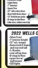 MVAidaho.com 208-536-5000 DAIRY, FARM, EXCAVATION & HEAVY EQUIPMENT, TRANSPORTATION, TOOLS, & MORE SUMMER 2024 JUNE 12th ONLINE AUCTION 5651 US HWY 93 JEROME, ID 83338 SUMMER 2024 JUNE 12th USED 2022 WELLS CARGO 8.5’X16’ Stk # 22021 Enclosed Cargo 2024 WELLS CARGO 8.5’X18’ ROADFORCE 2022 WELLS CARGO 7’X12’ 7’ interior height Rear ramp door 12” fold down stabilizers Spare tire w/ mount 9,300 RH RV entry door 11,000 RECIEVE $100 OFF ANY WELLS CARGO TRAILERS W/MENTION OF THIS AD! 2022 WELLS CARGO 8.5’X 20’ $14,500 $2,500 9’ FLATBED FOR HEAVY DUTY TRUCK Gooseneck ball Receiver hitch 2022 WELLS CARGO 8.5’X16’ 7’ Interior 12” Ext. A-Frame Tongue 3/4” Black textured polybead flooring 24” Beavertail $14,200 2021 WESTERN STAR 4864 FX Cab and Chassis $24,900 2006 KENWORTH T800 Stock #22068 $36,500 2022 WELLS CARGO 8.5’X16’ Road force pkg Spare tire w/ wall mount Bonded side panels $12,600 2022 LOEWEN 16’ DUMPBOX Comes with pto, Pump, Tank, Tower and controls $24,500 VAN BODIES 2022 WELLS CARGO FAST TRAC 8.5’X20’ $71,500 2025 SIDE DUMP 47’ Frame Air Lift 3rd Axle Allows for Increased Payloads 50˚ Dump Angle 35’ Domex-100 Steel Side Dump Tub RideWell RideLight Air Suspension 2022 WELLS CARGO TRAILER 7’X14’ Tandem Axle 7’ Interior height Rear ramp door Side RV entry door • Interior dome light 4 D-rings in floor • Spare tire w/ wall mount $9,800 GROVERSA LLW HEELS.COM 208-745-7077 OR 208-351-3755 • 4140 E 645 N RIGBY, ID Grover’s ALL WHEELS HAY WAGON 16'. 208-530-1616 If no answer leave message. JD B tractor, runs, $500. Two 8' round feeders, $75 each. 208-604-3468. HAY GRAPPLE, for Skid Steer, Brand new, 6' wide, 6 spears, $2800. 307-880-1091. If you’re reading this, so are your Potential Customers! ADVERTISE HERE! Place your ad ONLINEat www.thriftynickel.com 500-600LB SAUSAGE sows. 208-351-7500. PHILLIPS CONSTRUCTION and Fencing, Spring Special 30’x40’x10', Starting at $36,000. Includes one Garage Door and a Personal Door, 4" thick concrete floor. 208-604-3844, serving Southeast Idaho. REGISTERED BLACK Angus coming two year old bulls, good mix of calving ease and growth bulls available. 208-520-5259. YEARLING BLACK Jack donkey, $1850. Call or text Jerry 208-221-4944. WE ARE accepting and buying horses and ponies, of all kinds, if you have horses or ponies you would like to sell please give us a call, we pay cash. Also horses and ponies for sale. 208-351-7500. MAHINDRA TRACTOR model 8560, 82hp, 4WD with loader, 7' bucket, low hours, great condition, $20,500. 208-540-0605. WOULD LIKE to buy 20-30 ton of good alfalfa grass hay. Also buy clean up hay. 208-351-7500. 2 HOLSTEIN Heifers, 900 lbs. Good for freezer meat. 208-351-7500. WANTED: OLDER backhoe or tractor with front loader, running or not, in need of one please call. 801-608-6916 SECOND AND third crop hay, some rain damage, 3x3x8 bales, $75/ton. 208-403-6150. 3 LIGHT birthweight Angus bulls, give me a call. 208-705-9309. RED ROAN coming 2 year old stud colt, for sale, Boonsmall Blue X Highbrow Cat granddaughter. 307-887-9100. For price and info. ALFALFA HAY $115 per ton. 208-681-5097. SPECIALIZING IN Livestock fencing. Call 307-887-2855 for a free estimate. Serving Southeast Idaho and Western Wyoming. 17 YEAR old Bay mare registered paint, sound, needs experienced rider, $2500, 208-390-0214. TRACTOR/ MINI Excavator Services Tilling, Grading, Discing, Lot Mowing and Cleanup, Landscape Prep, Gravel Roads, Ripping, Re-Dike Fields, Pasture spraying and lot spraying. Pasture, lawn Reseeding and Rock Picking. Excavator Services. 208-681-0679. DITCH CLEANING, water lines, sewer lines, septic systems, trenching, post holes, laser leveling, dump truck services, mowing, tilling and demolition. Free estimates. Call Jordon 208-569-1983. HEAVY DUTY, light weight, and commercial wood pallets. 208-530-1616 if no answer leave message. HIGH QUALITY Hay, Pocatello area, under cover, 208-380-1228 GREENHOUSE IS Open. Firth Mill & Elevator 101 East Center, Firth. 208-346-6122. 50 ROUND bales good alfalfa, but uncovered, $50 bale. 208-243-4442. JOHN DEERE 260 front end loader, joy stick, 7' bucket, with quick detach, loader, excellent condition. 208-757-0525. FIRST CROP hay, 3x3 bales, around 800lb, $55 per bale. Second crop, 3x3 bales, $65 per bale. Rexburg area. 208-390-4351. GRASS OR grass alfalfa hay appx. 3x4x8 bales, $100 per bale. Rexburg area. 208-201-6449. SECOND CROP alfalfa bales, with 10% grass, approximately 110lbs each. RFV of 154, CP 20, $8 per bale. Blackfoot area. Call 208-680-3231. HAY TARPS large and small sizes, durable material. 208-530-1616. If no answer leave message. Some restrictions apply, see store for details. Idaho Falls 2665 N. Holmes 208-522-5030 Pocatello 1460 Yellowstone Ave 208-237-5700 VICKERSWESTERNSTORE.NET LADIES JEANS! ASSORTED STYLES $39.88 SMALL STRAW bales, $4 per bale. Wanted: metal ditch head gates. Shelley Area. 208-313-0497. 60 TONS tarped 4x4x8 baled hay, 169RFV, 22CP, 66TDN, semi loads only. Blackfoot 208-785-5936. SINGLE DISC dyker, excellent condition. 208-757-0525. JOHN DEERE 3020 tractor, 1972 diesel, power shift, recent major overhaul, good drive tires, $11,500 OBO. 307-880-1091. JOHN DEERE 4440 tractor, cab, air, heat, power shift, duals, quick attach on 3 point, 6200 hours, with or without John Deere 260 loader with joey stick. 208-757-0525. RANCH RAISED Beef. NO HORMONES/GROWTH Stimulates or antibiotics. Now have grass fed beef and Omega 3 beef. Quarters, halves or whole. Call for information Boyd E. Christensen 208-705-4874, 208-252-1246, West of Moreland, Idaho. FIRTH MILL & ELEVATOR (208)346-6122 101 East Center • Firth, ID Check with us for your chick needs! DOG & CAT FOOD SOLD HERE Quality feed at a fair Price! • FLAKED BARLEY • FLAKED CORN • CM LAY • CM HOG • CM 4H MIX Chicks Going Quick! All Things Spring! We’re Open Regular Hours! 8am-5:30pm M-F, 8am-Noon Saturday AVAILABLE NOW! • Protein Tubs • Bloat Guard • Ivermect