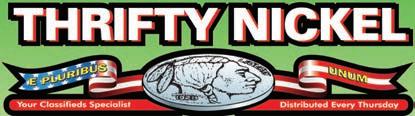 Thrifty Nickel Index Ad Order Form . . . . . . . . . . . .13 Antiques & Collectibles.. ..........3 ATV’s . . . . . . . . . . . . .5 Auction Calendar . . . . . . . . . . . . .3 Auto Parts . . . . . . . . . . . .10 Boats . . . . . . . . . . . . .5 Building Materials . . . . . . . . . . . . .3 Business & Service Guide.. ........6 Cars . . . . . . . . . . . .10 Classic Cars . . . . . . . . . . . .11 Employment . . . . . . . . . . . . .3 Farm Section . . . . . . . . . . . . .4 Financial . . . . . . . . . . . . .3 Furniture . . . . . . . . . . . . .3 Garage Sales . . . . . . . . . . . . .3 Heavy Equipment . . . . . . . . . . . . .3 Houses for Rent . . . . . . . . . . . . .6 Hunting & Fishing . . . . . . . . . . . . .3 Lawn & Garden . . . . . . . . . . . . .3 Livestock . . . . . . . . . . . . .4 Manufactured Housing.. ..........6 Medical & Health . . . . . . . . . . . . .3 Miscellaneous Ads . . . . . . . . . . . . .1 Motorcycles . . . . . . . . . . . . .5 Musical . . . . . . . . . . . . .3 Pets . . . . . . . . . . . . .6 Recreational Vehicles.. ...........5 Real Estate . . . . . . . . . . . . .6 Sporting Goods . . . . . . . . . . . . .3 SUVs . . . . . . . . . . . .11 Tools . . . . . . . . . . . . .3 Trailers . . . . . . . . . . . . .5 Trucks . . . . . . . . . . . .11 Discuss all your advertising needs over the phone. 208-529-9360 or 208-233-2011 Visit our new website and select “Place Ads”. thriftynickelif.com Type up your advertisment with your contact information and email us at: ads@thriftynickelif.com Mail Write your ad on paper and mail it with payment to: P.O. Box 1705 • Idaho Falls, ID 83403 New Ads • Changes • Cancellations $5.00/week for 1st 10 words, $.20 each additional word. Mon 9-3 • Tues. 9-5:30 • Wed 9-3 Venmo NOW ACCEPTING PAYMENTS! Scan code with your camera! or on the Venmo App: @thriftynickelif E it’s neverbeen to place a want ad Please include your name and phone number so we can credit your account WWII AND Vietnam War Souvenirs (guns/ military) Wanted. 208-662-5437 Hamer. HEAVY DUTY, light weight, and commercial wood pallets. 208-530-1616 if no answer leave message. WANTED: OLDER backhoe or tractor with front loader, running or not, in need of one please call. 801-608-6916 20% OFF all in stock Bassett, Stanton furniture. Big floor model mattress sale savings, save up to 50%. Romaine's Mattress King. Stop in Today! 563 S 25th E, Ammon, Idaho. 208-522-0599. TREE STUMP grinding, reasonable rates, free estimates, grinder is capable of going through 36" gate. Call 208-221-8284. FOR BONNEVILLE COUNTY COMMISSIONER ALAN STEEL ELECTION: MAY 21, 2024 PAID FOR BY KENT LOTT - TREASURER THANK YOU FOR YOUR SUPPORT! HAY TARPS large and small sizes, durable material. 208-530-1616. If no answer leave message. "RENT TO OWN" Become a homeowner for the price of renting! Some as low as $695 per month for a 3 bedroom, 2 bath manufactured home with yard. They won't last long! Pocatello Area. 208-237-1161. ARE YOU Tired of Draining Debts?? Call (877) 422-4557 To Consolidate Pay Day Loans, Medical Bills, Credit Cards, Accounts in Collection Into One Low Payment!! ARGON TANKS, 125CF and 60CF, almost full, Tig welding torch with 20' lead, Miller pressure gauge and flow meter. Pocatello 208-241-5352. WOLVERINE CONCRETE LLC. 35 years experience, sidewalks, driveways, patios, steps, footing and walls. Licensed, bonded and insured. 208-390-9521. Visit us on Facebook! EMPTY 275 Gallon Plastic Totes, $50 each. 208-317-6659. ALL THINGS Spring! We're open regular hours! 8am-5:30, Monday-Friday, 8am-Noon Saturday. Firth Mill & Elevator 101 East Center, Firth. 208-346-6122. TREE WORK! Best prices, 20 plus years experience, pruning, trimming, removal. Free estimates, also firewood, $250 per cord, split and delivered in town. 208-403-1743. CUTE SHEDS. Free Delivery. Low as $2565 or rent to own $119/ month. Howard Equipment & Supply. Shelley. 208-357-3200. montanashedcenter.com TITLE LOANS! 3% interest per month avg. Call or come into Chastain Financial Services, Monday-Friday 9-5, 280 South Holmes Avenue, Idaho Falls, 208-542-5155. CASH FOR Junk Cars, Running or Not! I'll tow! Competitive Prices!! 208-521-3091, 208-522-1100. We pay regular prices 3575 Hwy 30 W, Pocatello 208-233-7720 1155 N. Higbee Ave, Idaho Falls 208-529-4180 Open: Mon-Fri 8am-5pm Good thru 4/21/24. Not valid with any other offer. PLUS 5¢/LB for clean aluminum / aluminum cans $ 5 /TON Bonus Scrap Iron & Farm Equipment $ 5 /TON Bonus on All Autos or Appliances GROW SOME SPRING Cash! $ Got a Junk Car? All You Need is a Title! LICENSED CLASS B contractor. Insured/ bonded 7 years in SE Idaho. Interior, Exterior, new, and repairs! Windows, doors, floors, and more. Call for availability. 208-244-4823. ASSORTED TARPS, hay, RV, boats etc. durable material. 208-530-1616. If no answer leave message. SOFT CLOSE: Tues, April 23rd @6pm (208)522-7984 For photos and details: www.bighornauctions.com ONLINE ESTATE AUCTION Sterling Silver 12 Place Setting Silverware Set • Autographed Movie Posters • Star Wars II • Godfather II • Pretty Woman • Forrest Gump • Grease • Brave Heart • A Fish Called Wanda • Estate Jewelry • Liberty Head Twenty Dollar Gold Coin NGC MS63 • Graded Morgan & Peace Silver Dollars • Silver Rounds • Rare Coins • 10 Oz Silver Bars • Leather Recliners • BBQ Grills • Outdoor Furniture • Commercial Meat Slicer • New & Used Household Items • Yamaha Generator • Drill Press • Hand & Power Tools • Gold Dredge and Accessories • Gold Magic Spiral Gold Recovery System • Firearms: Enfield No. 4 Mk2 303 British • Browning SxS 20 Ga. Shotgun • Nikko 12 Ga. O/U Shotgun • Mossberg 12 Ga. 3” O/U Shotgun • Ruger Precision 17 HMR Threaded • Ruger Precision Threaded 22 Rifle • Beeman Sportsman Air Rifle • Outdoor Items and Much More! NEW ITEMS ADDED DAILY! 2895 North Holmes Idaho Falls, ID STIHL MS271 chain saw, 18" bar, used 1 summer, well maintained. runs good, $240 OBO. 20