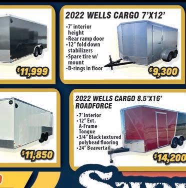 2022 WELLS Cargo 7'x14'. 7' int height, spare tire, rear ramp door w/ RV entry door. $9,800. Grover's All Wheels. 4140 E 645 N,Rigby. 208-745-7077 or 208-351-3755.