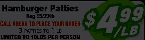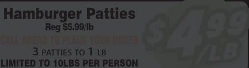 LEAN GROUND beef, regularly $3.99/ pound. Only $3.79/ pound when you order 25+ pounds. Mention this ad for this price plus a $5 coupon. Jones Meat and Food services. 423 N. Yellowstone Highway, Rigby. 208-745-6523.