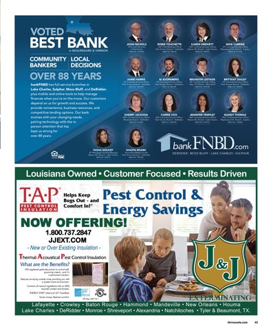 66 Thrive Magazine for Better Living • March 2023 CATCH IT! Spring Fever. Let Landscape Management help you make your yard BLOOM! 5005 Cobra Road, Lake Charles (337) 478-3836 M-F: 7am – 4pm | Sat: 8am – 2pm landscapemanagement.org Our experienced team can create a custom design for your yard and outdoor living area. If you’re a do-it-yourselfer, we can create a plan,help you choose your plants from our retail nursery, lay out your beds and guide you as you transform your yard. Call us or stop by our retail nursery. CenterForOrtho.com | (337) 721-7236 | Lake Charles | Moss Bluff WE’RE AROUND YOU CENTERED