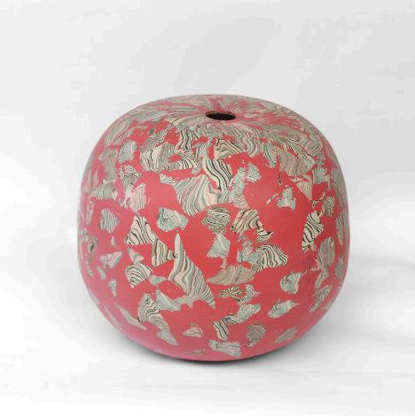 NerikomiDebrisPotwithRed,Brown,Pinkand GreyInlays, Stoneware,15x15cm