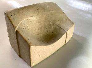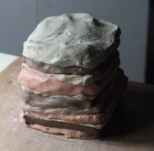 EachdayIcycletothestudio,there'susually someclayrecyclingandkilnfillingand unloading.Howeverthere'snootherusual activity,astasksdifferfromdaytoday.For exampleifalargeorderhascomeinI'llspenda daylayeringandblockingclayinpreparationfor makingbowlsandplates.AfewdayslaterI'll beginslicingandpressingtheplatesandbowls, andthefollowingdayshoningthesurface.It's quitephysicalandrepetitiveforthedays,but maynotberepeatedforanother1or2months. Mymakingprocessfromstartingwithlayering claytofinishingwithabowlorsculpturalpot takesatleast5weeks.
