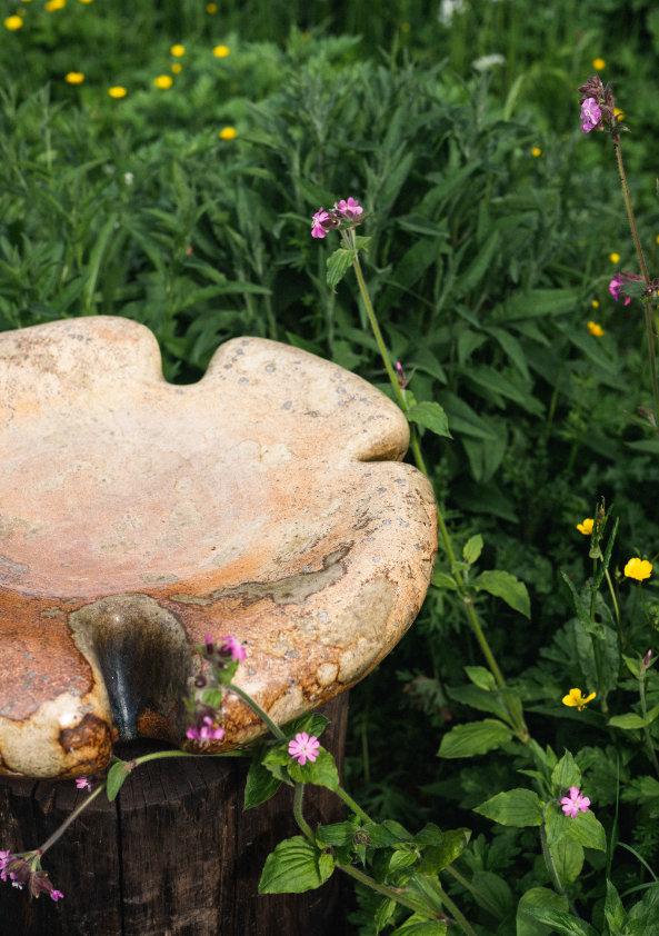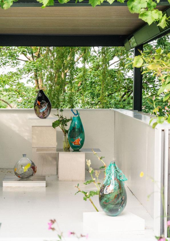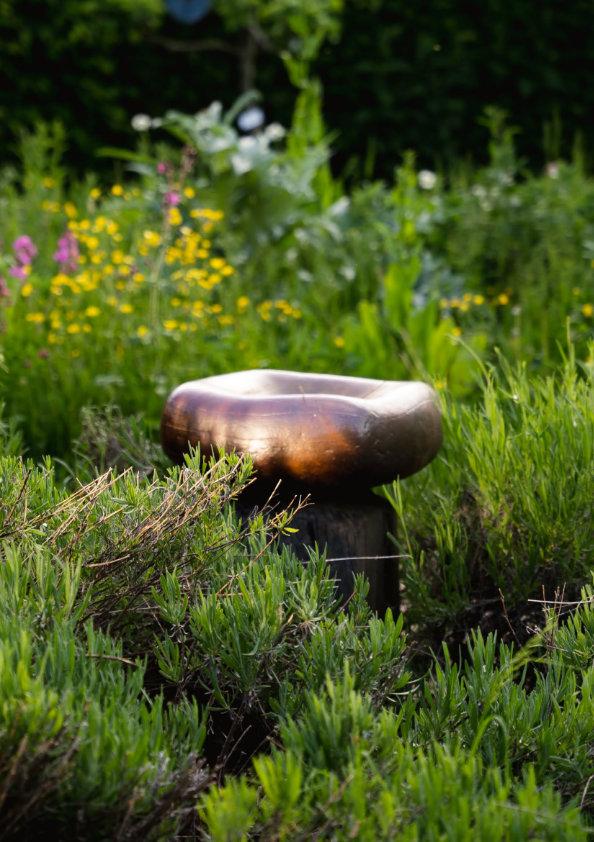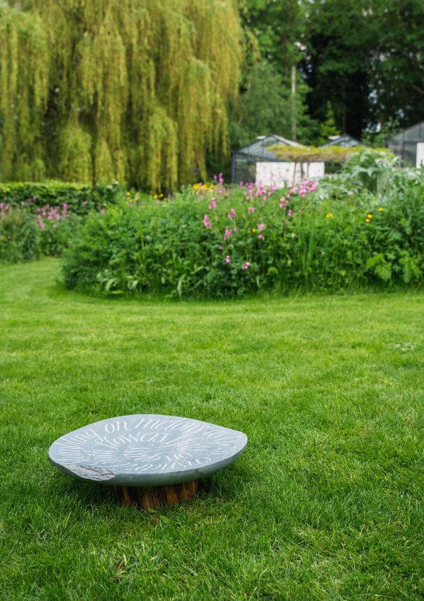 Itmakessensethatanyworkyouplaceina contextlikeagardenshouldrespondtobeing there.Maybeitsformisreflectingthenatural thingsaroundit,orcoloursandtexturesplayoff thoseoftheplants.Heightisalsoimportantstackingorbuildinguponplinthstointegrateor makeafeature,agoaltowalktowards.