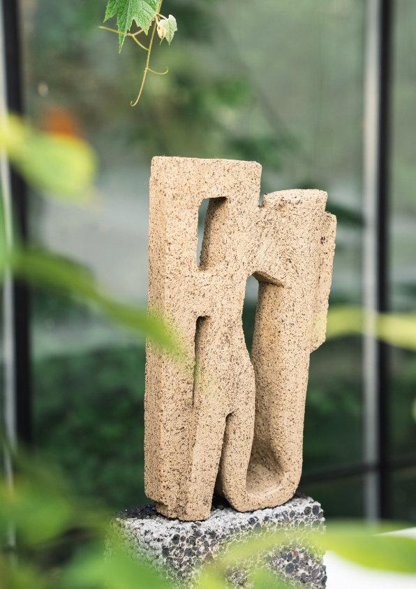 Thesculpturessuggestalayeredandgraphic aesthetic,oftenplayingoffeachotheras assemblages.