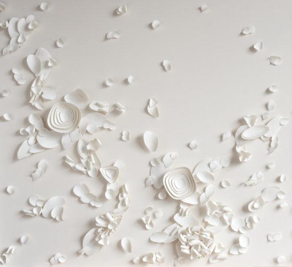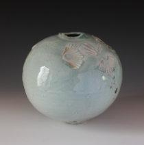 Pearlescentglazesonwhitestoneware SculptureSize:25cmx25cmx5cm PlinthSize:15cmx15cmx6.5cm