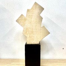 Pearlescentglazesonwhitestoneware SculptureSize:25cmx21cmx5cm PlinthSize:16cmx9.5cmx9.5cm