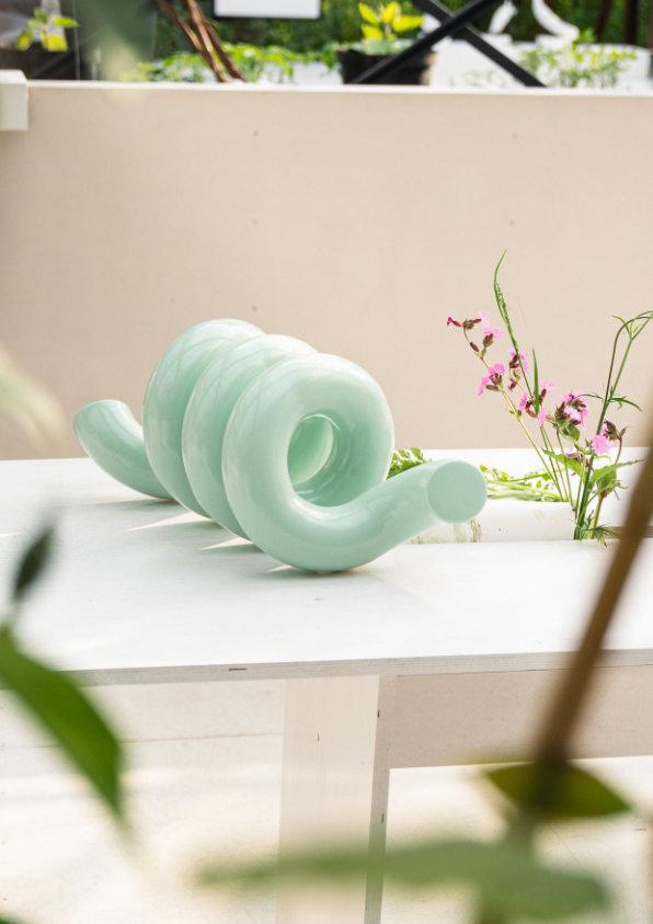 “Theinstinctiveemotionalresponsetothe processofgrowth,repetition,duality,aconstant pushandpullbetweentheoppositesoforder andchaos,plannedandspontaneous,perfect andimperfectareideasthatdrivemycreativity. Havingabackgroundinarchitecture,the appreciationofsurroundingenvironmentisthe startingpointofeverypiece.Theirdesignis definedbyasetofguidingprinciplesanda processofresponse,carefullycuratinga conversationwiththespacethatsurroundsthem. Itisabouthowthepiecesanswertotheir environmentaswellasthematerialtheyare createdfromratherthanhowtheylookontheir ownanditisdesigningwithvoidsandshadows asmuchaswithmaterialelements.”