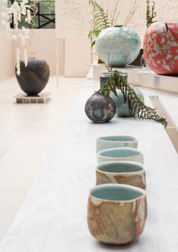 Throughprogressiveexperimentationonasmall scale,I'veaccumulatedknowledgeofcolour, patternarrangements,andformsthatwork togetherbetter.I'vealsousedproductionto developoff-cutarrangements,includingmaking off-cutplatesforTateModern,andoff-cupsfor HatoStore.Theseinformmyplansforfuture work,butit'salwaysagoodideatohavean openmindwhenopeningthekiln.