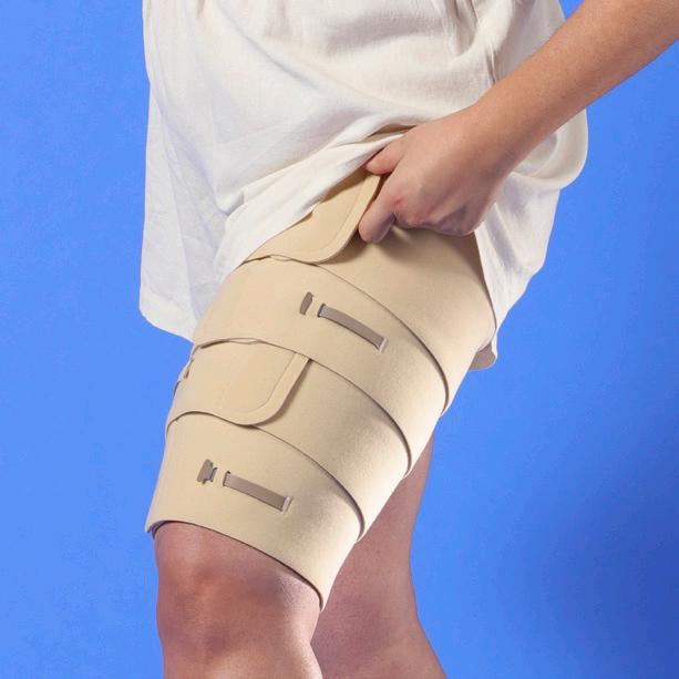 Justerbar lårdel med integrerat Pressure Adjust-system som visar exakt vilken kompression som applicerats. Lårdelen kan vid behov kombineras med knädelen.