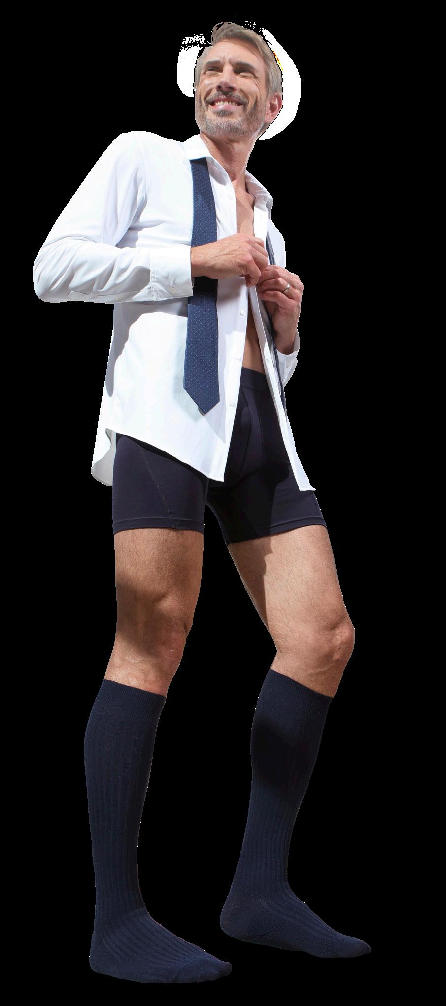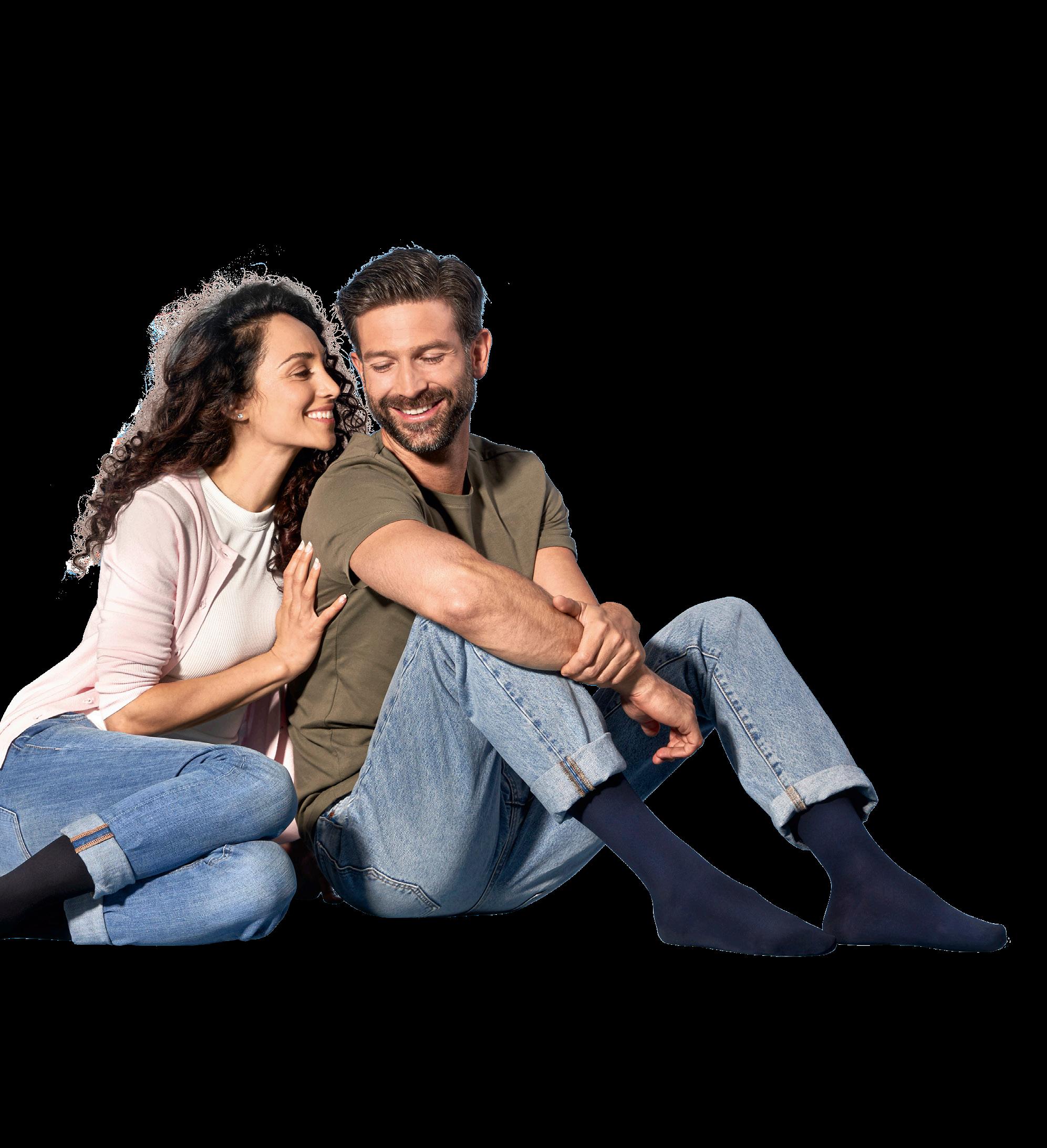 Med avancerad stickningsteknik har vi skapat en ribbstickad design som är svår att skilja från vanliga herrstrumpor. Den sömlösa och mjuka avslutskanten utan silikonkant gör Venoflex Men särskilt sköna att använda.