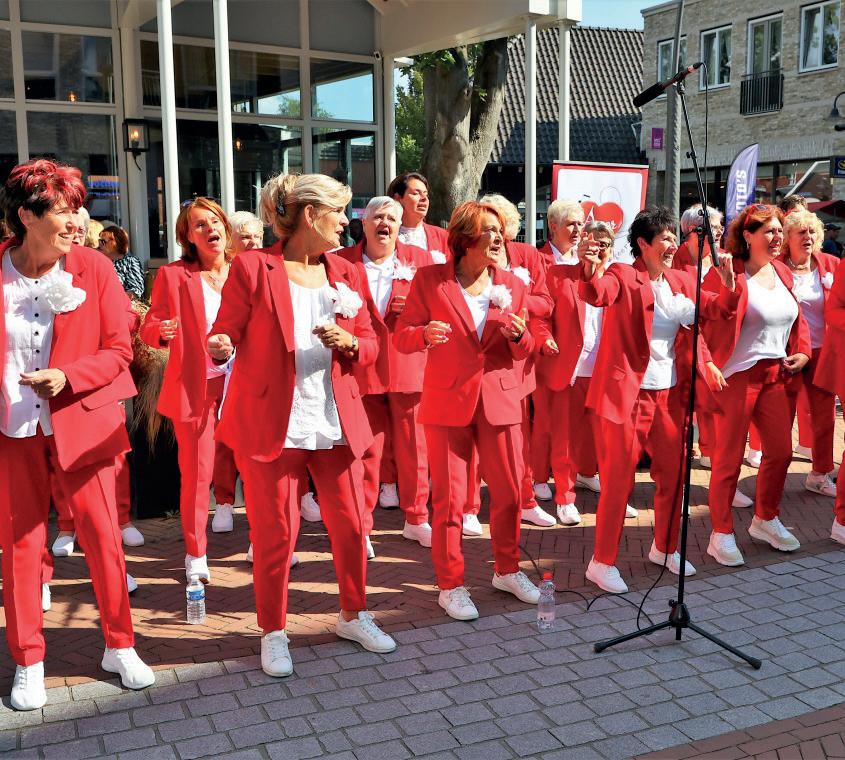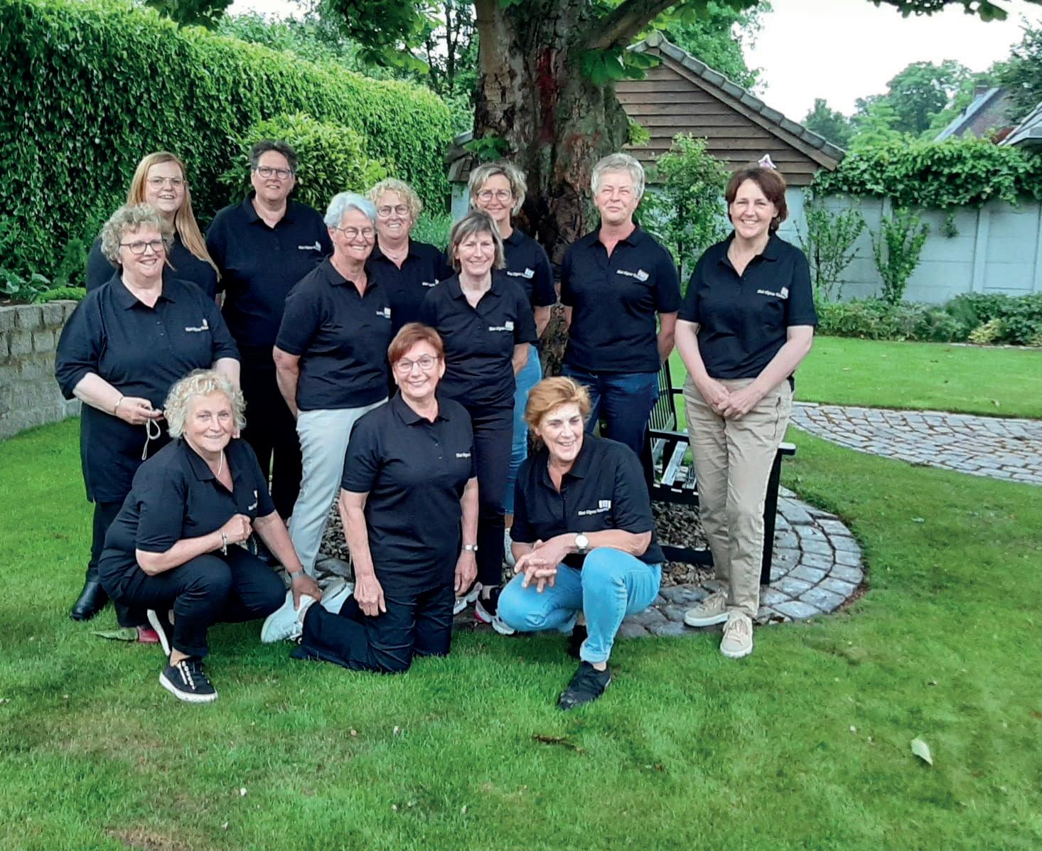 stage op De Herven zomaar in ‘het diepe’ werd gegooid bijvoorbeeld. “Uit het niets werd ik een kamer op gestuurd om een dementerende man te wassen die gefixeerd was met een Zweedse band, een onrustband.” Of die keer dat ze bij een avonddienst een eveneens demente vrouw in haar eigen huis aantrof, met haar jas aan en weekendkoffer naast zich. “Ze zei dat ze naar huis moest. Ik had kunnen reageren dat ze daar woonde, maar besloot die discussie te ontwij ken. We stapten in mijn auto en ik zei dat ik haar wel naar ‘huis’ zou brengen. Ze mocht zelf de weg wijzen en zo stonden we even later weer voor dezelfde deur. Ze liep zo mee naar binnen.” Haar leidinggevende was destijds niet blij met het voorval, maar bij het (werkende) afscheid werd Diny met terugwerkende kracht juist ge roemd om haar aanpak. “Ik was mijn tijd vooruit, zeiden ze.” Ze is haar hele leven al vooruitstre vend, vult Geertje verder aan: “Diny neemt, gevraagd of ongevraagd, zelf initiatief. Heeft een eigen visie op dingen en verkondigt die heel krachtig. Dat is haar kracht. Ze zet ook altijd heel wat stapjes extra. Toen we in de coronatijd gesloten waren en bij mensen thuis op bezoek gingen, deed Diny - omdat ze er toch was - ook meteen even de tuin. Ze haalt ook mensen thuis op, belt deelnemers die ze al even niet meer heeft gezien, om te vragen naar de stand van za ken, gaat op ziekenbezoek of naar een uitvaart. En ze is natuurlijk ook nog mantelzorger voor haar eigen man.”
