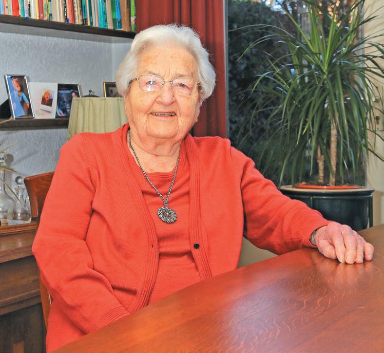 Mijn man had een leidinggevende functie voor het onderhoud op de vliegbasis, en door overplaatsing zijn we meerdere malen verhuisd. Toen hij uiteindelijk 55 jaar was mocht hij met pensioen, en kregen we veel vrije tijd samen. Eindelijk tijd om te gaan fietsen. We gingen vanuit Eindhoven op zoek naar een rustige omgeving met veel natuur, en zo kwamen we in 1976 in Mierlo terecht. Ik werd lid van het Vrouwengilde, en mijn man vond zijn passie voor de natuur bij het IVN. Hij is hier ook nog voorzitter en secretaris geweest. Helaas is mijn man in 2006 gestorven. Dit is een groot gemis, maar ik maak er iedere dag opnieuw het beste van. Ik ben 97, maar ik geniet nog volop. Ik doe alles zelfstandig, en zorg nog steeds dat er dagelijks een verse maaltijd op tafel staat. Verder lees ik ontzettend graag, en een bibliotheekbezoekje kan ik dus ook erg waarderen.