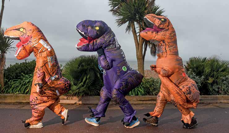 Graeme and Tommy were invited by several local hostelries to collect funds on behalf of the Association, which culminated in an epic 19-stop dinosaur pub crawl one memorable weekend. Around 60 people, young and old, joined them on a cold, wet day on their final walk along Marine Parade, many of them in dinosaur costumes.