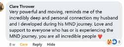 24-hour care we need. We have many shoulders to cry on, and we are financially ok for now. But so many aren’t as lucky as we are. The MND Association is amazing. But they are vastly underfunded, and under-resourced to deal with the weight of support needed to carry families and patients through this god-awful journey.”