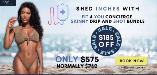 Have you hit a plateau in your weight loss journey? Are you looking to boost your energy, metabolism and shed a few extra pounds? AquaRX IV Drip Bar and Wellness Spa can help with our 4 week Fit 4 You Skinny Drip and Shot Package.