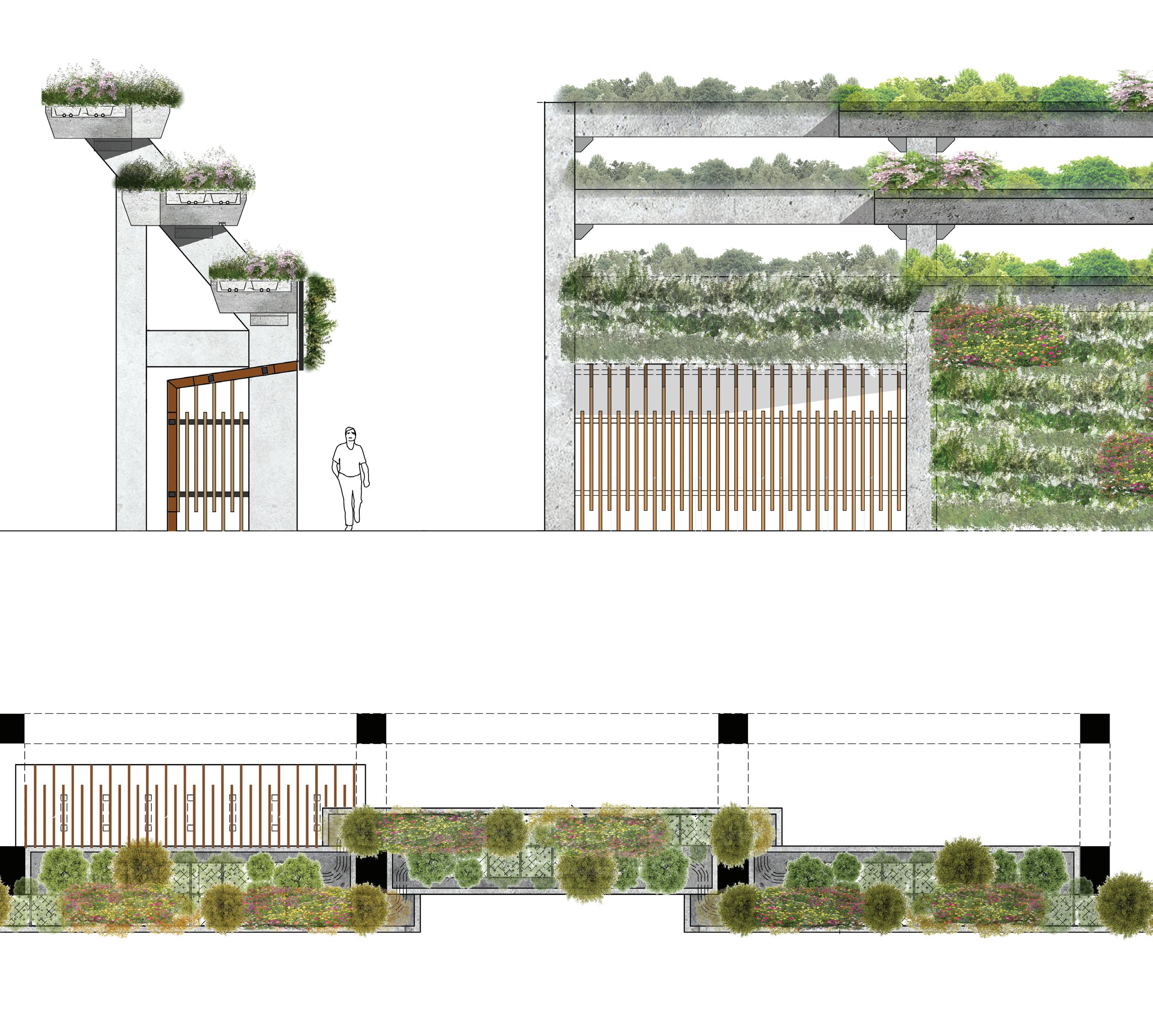 “Apart from these, we designed cascading landscaped hills at the eastern and western sides of the site. These cascades, made with vertical green wall systems, will contribute substantially to a quality green cityscape in the neighbourhood and give shelter for bicycle parking, while also hiding future tenants’ dangerous goods stores.”