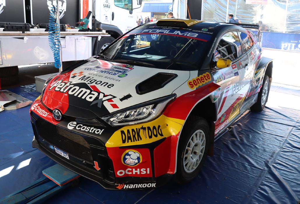 El vehículo del reconocido piloto Gustavo Saba fue exhibido frente a la sucursal de Servicios Médicos Migone en Encarnación, convirtiéndose en un atractivo especial para colaboradores y transeúntes que se acercaron a conocerlo de cerca.