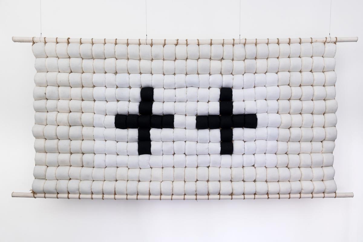 The Bell opens ojo|-|ólǫ́, a major solo exhibition by Diné artist Eric-Paul Riege (b. 1994, Na’nízhoozhí [Gallup, New Mexico]) that brings together his textile, sculpture, sound, video, and performance practices. A trained weaver, Riege incorporates customary Diné traditions into monumental soft sculptures and weavings that reference mythology, the history of settler trading posts, and the contested idea of “authenticity” in Indigenous art. Made from both synthetic and natural materials, these works invite touch and play while sparking conversations about Indigenous sovereignty, the global art market, and the role of institutions in shaping knowledge of Indigenous art and culture.