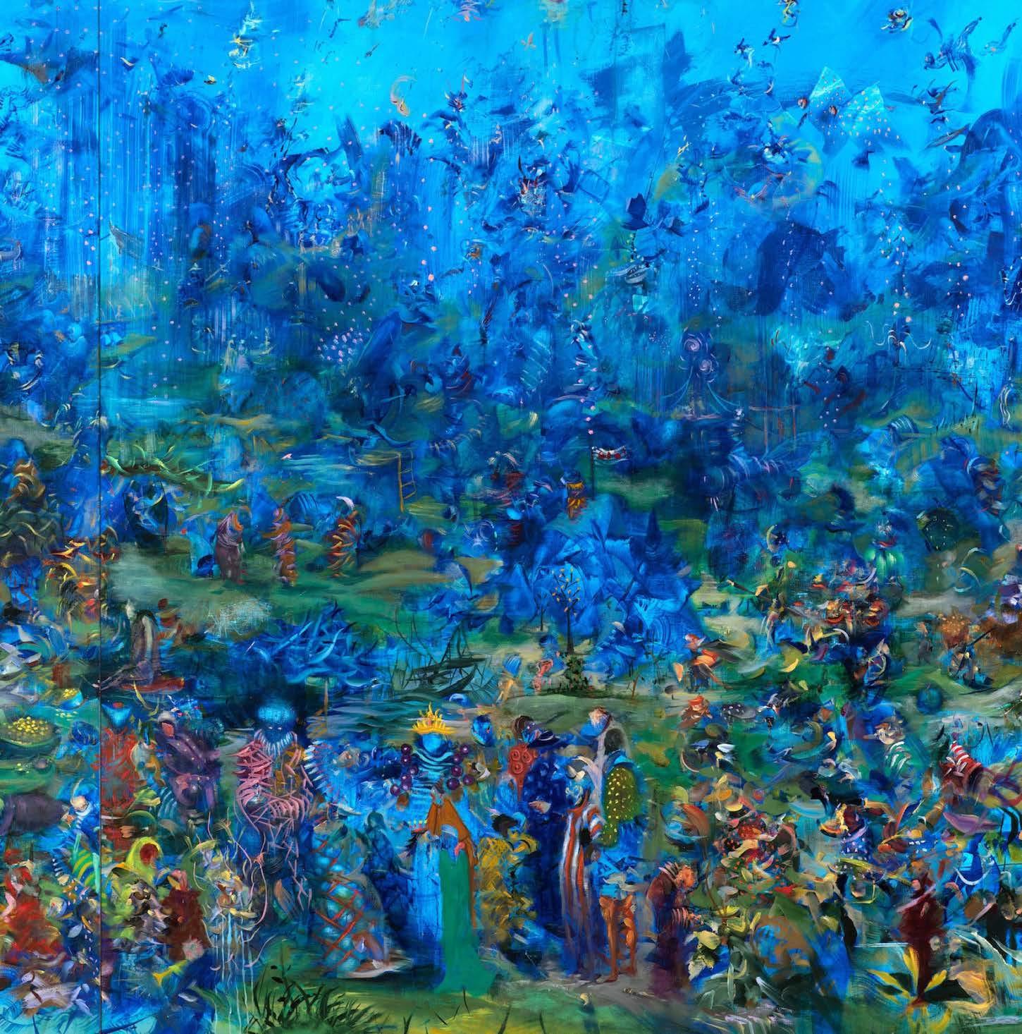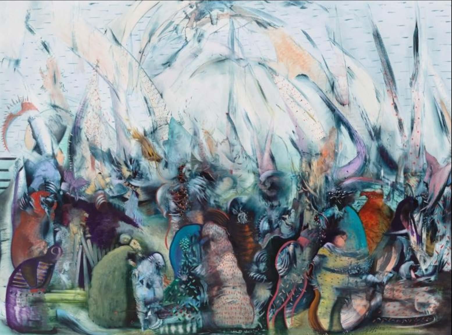 AliBanisadrisanIranian-born,NewYorkbasedpainterrenowned for his vast, orchestral canvases that merge the chaos of contemporarylifewiththemythicandthehistorical.Drawingon Persian miniatures, Abstract Expressionism, and the Old Masters, Banisadr creates immersive worlds where figures, sound, and memory collide in perpetual flux. Tia Collection is proud to have acquired“Age”(2015),animportantworkthatembodiesBanisadr’s visionary ability to translate turbulence into harmony, inviting viewersintoarealmbothtimelessandurgentlyofourmoment.