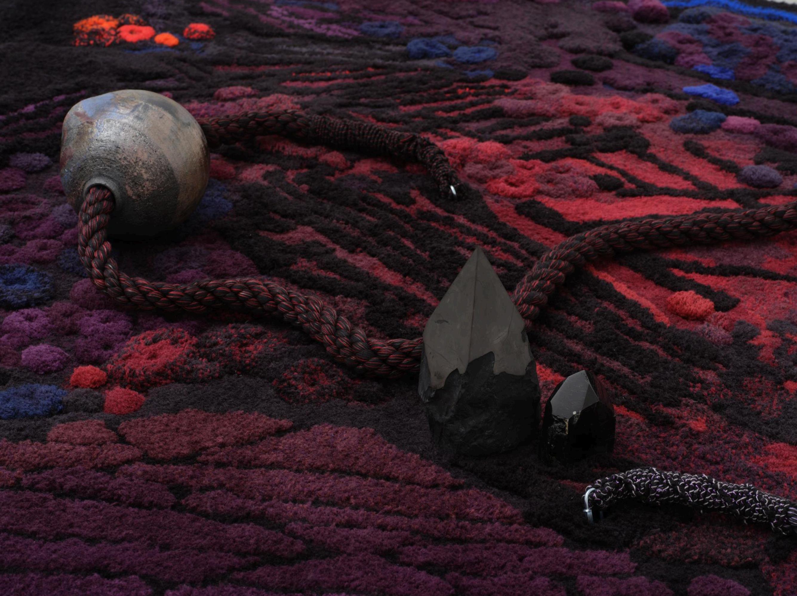Amaral’s sculptures and installations push the boundaries of fiber art, often combining weaving, knotting, and braiding to create striking abstract three-dimensional forms. Her earliest explorations, from the 1960s, frequently take inspiration from nature and feature unconventional weaving techniques. During the 1970s, Amaral created a group of monumental wall works; superimposing constructed layers of wool and horsehair enabled her to work at scale, evoking brick walls, leaves, and geological layers Her investigations would also lead her to experiment with paint, linen, cotton, gesso, gold leaf, and palladium.