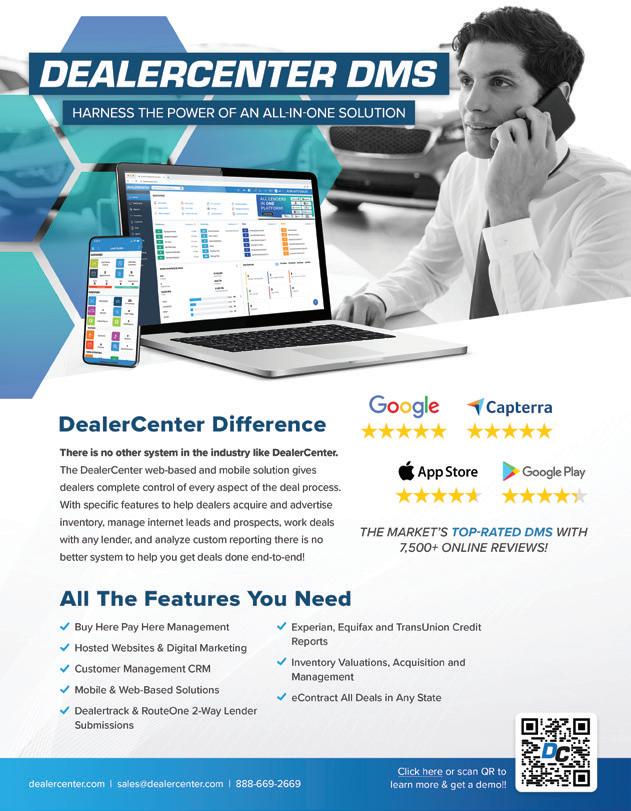15% OFF DEALERS GET ENROLLMENT Use code: TEXAS TAX SEASON IS BACK! Let Tax Max file your customers’ tax returns and have all the tax refund money sent to your dealership (Retail, BHPH, Franchise). Don’t chase tax refunds all around your city. Let Tax Max put all the tax refund money in YOUR HANDS! www.TaxMax.com 866-642-4107 BHPH Taxes by Text FREE TAX PREPARATION for your customers and employees Additional BHPH Programs Send your customers a text link in 30 seconds and they will work directly with Tax Max to file their tax returns. The dealership no longer does any of the work, AND THE MONEY IS STILL SENT TO THE DEALERSHIP! Irregular Payment Program - Use Tax Max all 365 days of the year to reduce terms up to 21%. Collections Program - Use Tax Max to collect on your past due accounts. Repairs Program - Use Tax Max to collect on your repair notes. All repair notes should have a Tax Max balloon payment due on March 15. With our NEW Elite Tax Max option, Tax Max will prepare and file the federal and state tax returns for FREE! (Call Tax Max for details) $ More benefits! Increase down payments by an average of $1,711 Increase lot traffic FREE Marketing Materials Customers can “Drive Now - Pay Later” Ask about our Tax Refund Advance $6,000 Up to Same Day Money