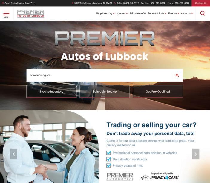 For example, independent dealer Premier Autos of Lubbock showcases their customer privacy in-vehicle data deletion services right on their homepage to boost buyer confidence and increase trade-in capture rates.