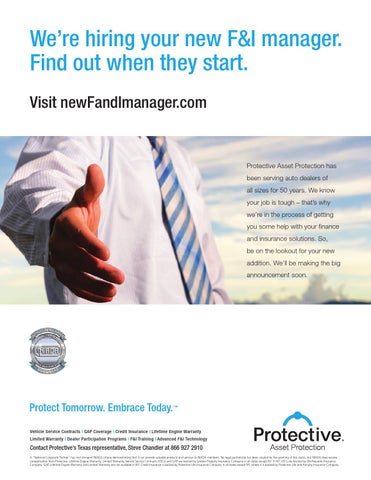 Protect Tomorrow. Embrace Today.™ Vehicle Service Contracts I GAP Coverage I Credit Insurance I Lifetime Engine Warranty Limited Warranty I Dealer Participation Programs I F&I Training I Advanced F&I Technology