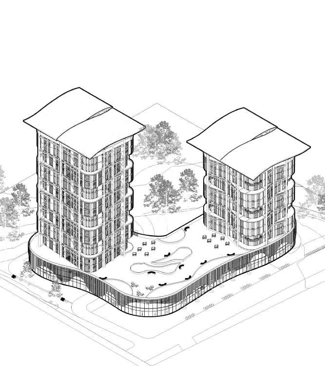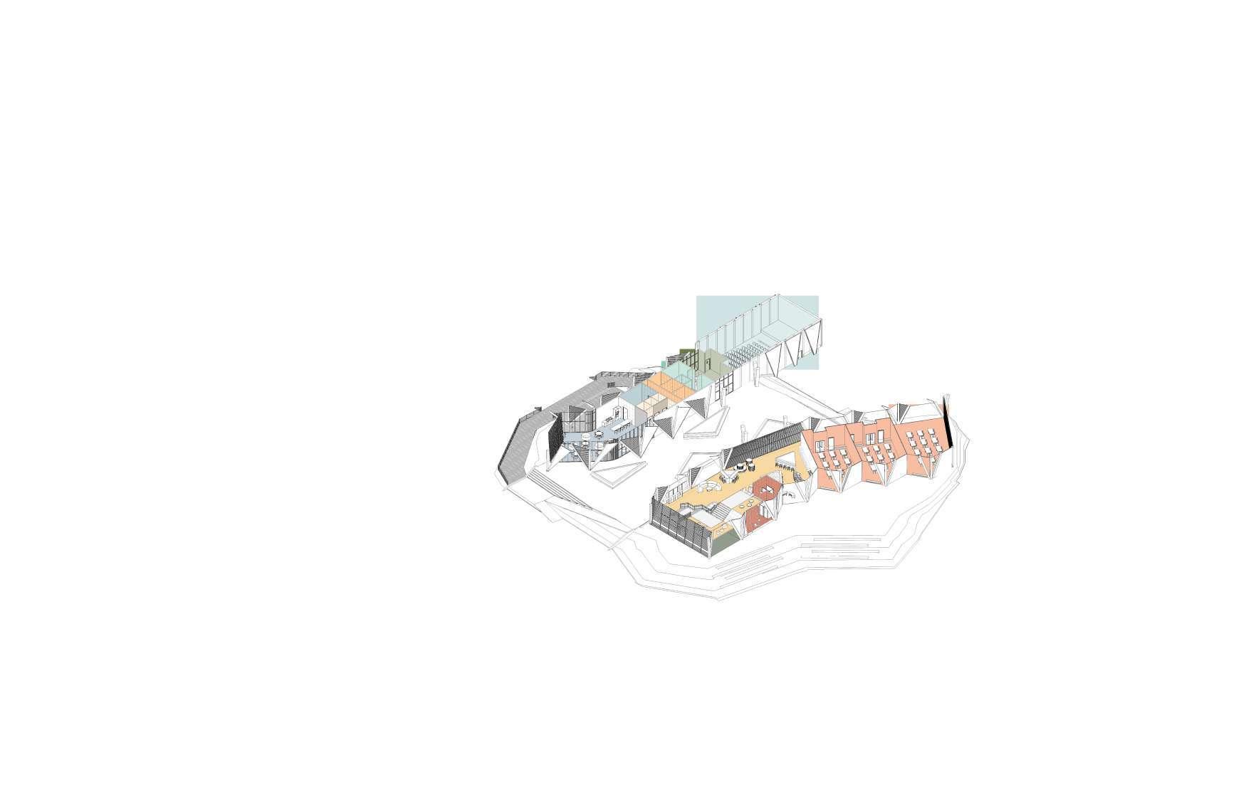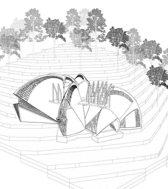 La composicion del proyecto parte teniendo como principio el sistema estructural esto a partir de la abstraccion de el habitat y sistema constructivo de un animal.