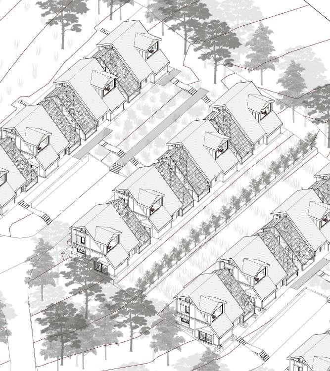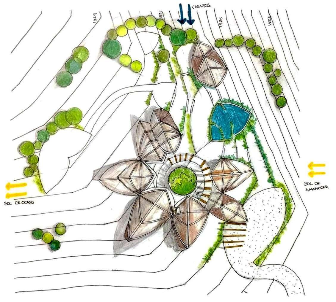 Terrazas de Bellavista es un conjunto habitacional de vivienda rural que incopora tecnologias y practicas ecologicas para minimizar el impacto ambiental, como el uso de energias renovables, la gestion eficiente del agua y el diseño bioclimatico. Busca la inteegracion entre la vivienda y la parte agricola ( productiva) de la zona.