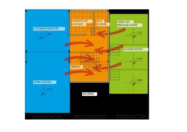 Relacion de areas de la vivienda con areas de cultivo mediante espacio transicional