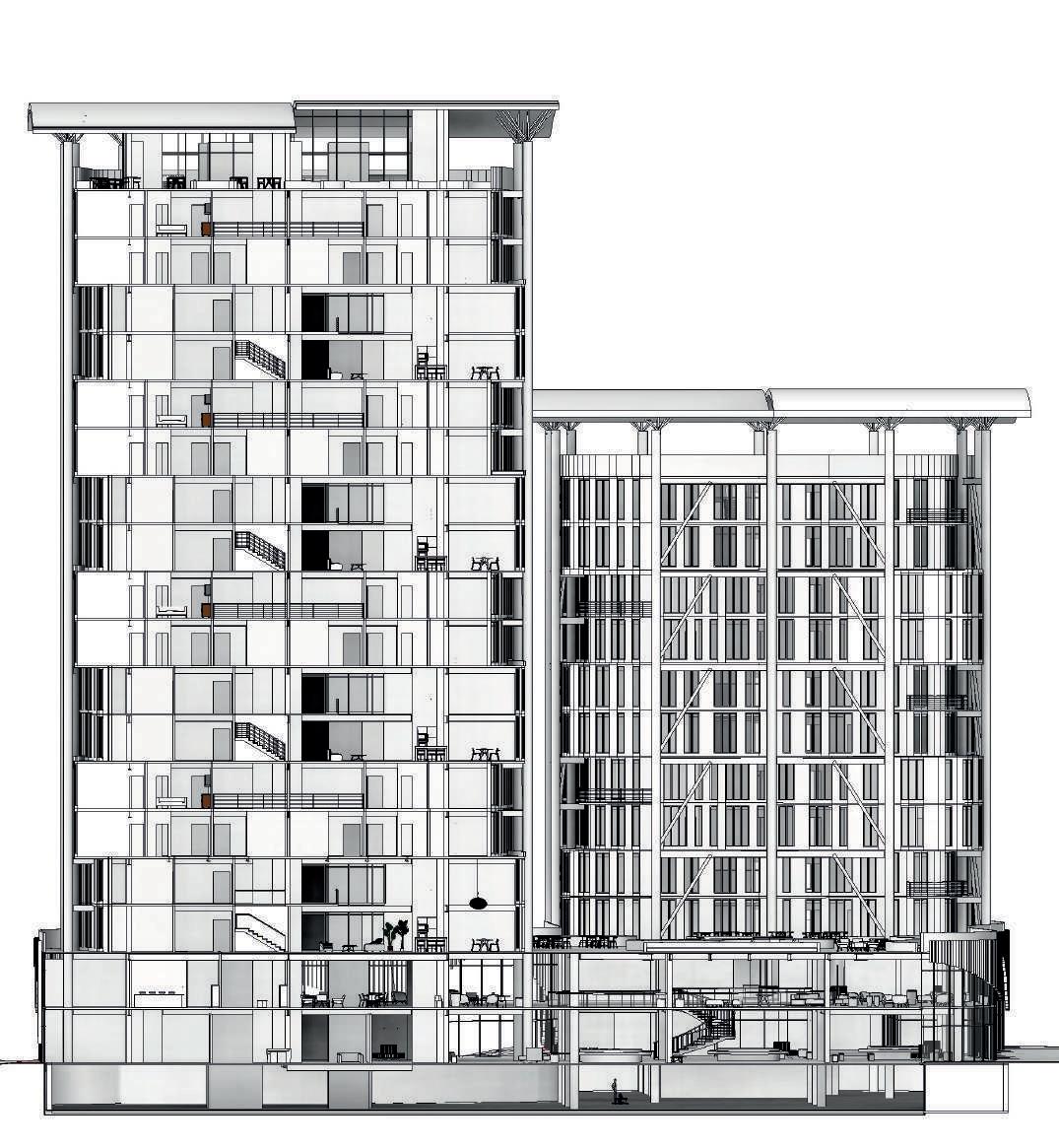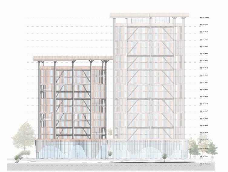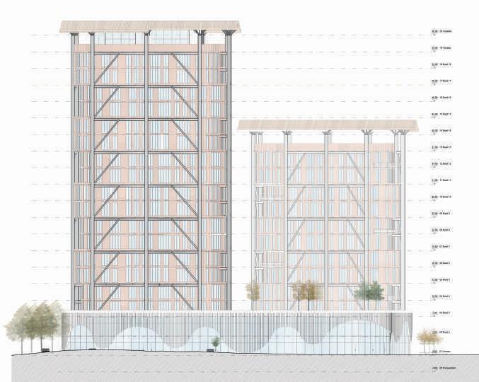 basado en pilares estructrales de acero, l combinados con riostras y pantallas estructurales en concreto.