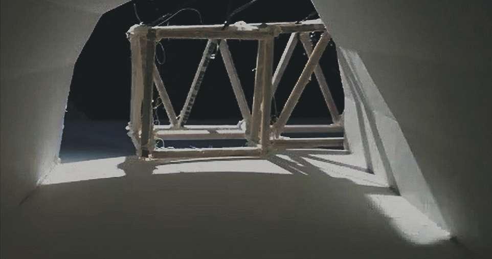 Conjunto de pasarela soldada anclada a un tirante estructural para resistencia a cargas horizontales.