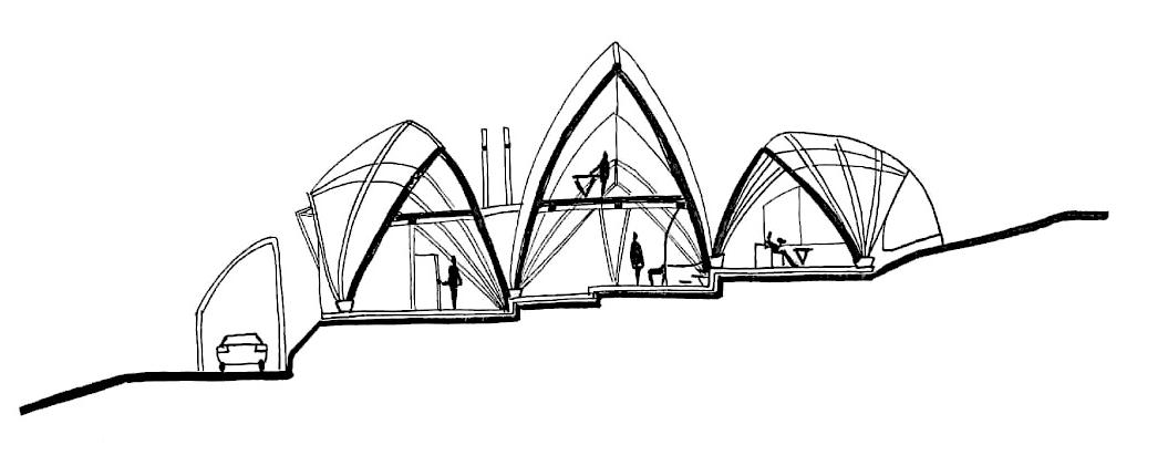 Estructura definida mediante superficie activa( cascaras), sistema de nervaduras y sistemas reciprocos organizacion espacial mediante centralidad