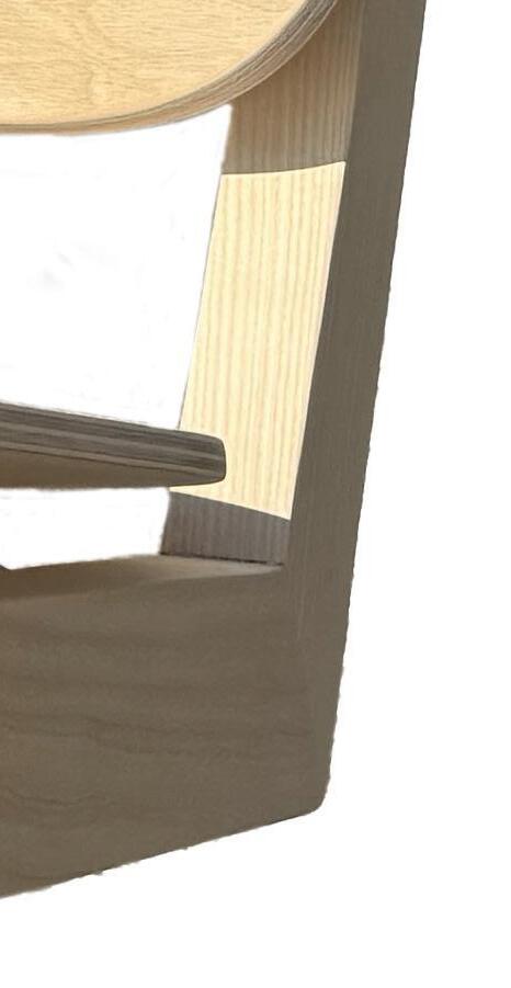 This was constructed with ash wood and the plywood for the seat and back were made by hand by layering 3 ply to make 9 ply. The curve was also done by placing the ply on a mold and secured with a ratchet crank.