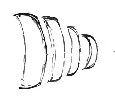 The chair tapers from the bottom to the top getting thinner the higher it goes. This makes it feel solid on the ground, and lighter as you rise up. It also is done this way as it follows not only the appearance but the structural needs.