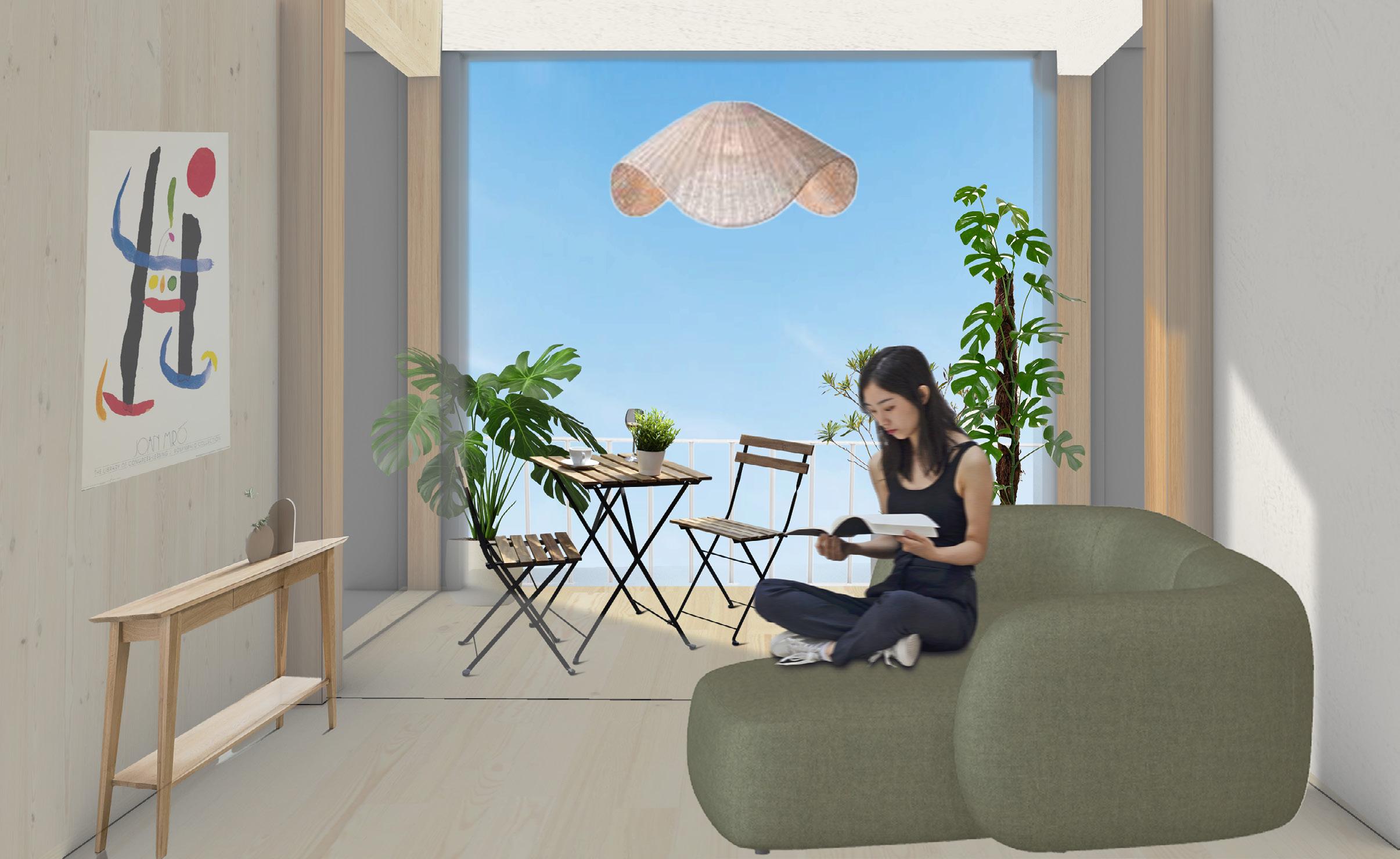 The structure of the building was done in a way to maximize the amount of housing we would be able to provide, whilst still complying with boundry laws. This is how the cascade structure came to be. It ensures every unit and surrounding buildings receive at least 1 hour of sunlight and also connects the street to the building encouraging connection.