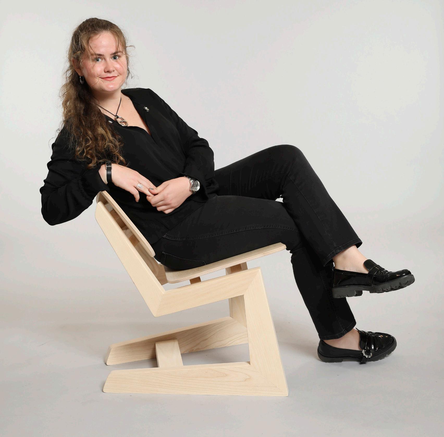 “Svæve” means to float. This chair defies gravity by “floating” both in its structure but also in its seat. The streatchers curving and being inset into the seat create the illusion of both the seat and back to be floating away from the main structure.