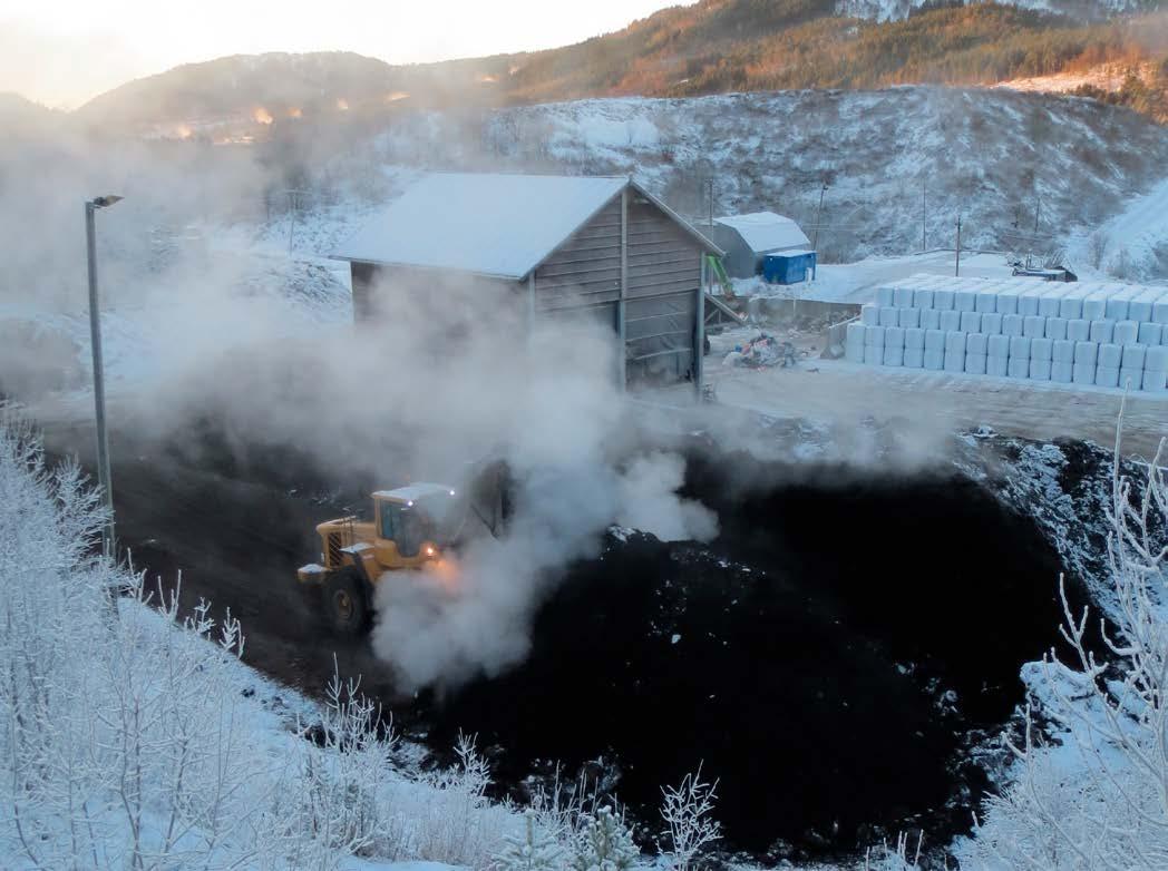 Selv på vinteren er det høy varme i kompostrankene. Når komposten snus tilføres oksygen som hjelper til å holde temperaturen oppe.